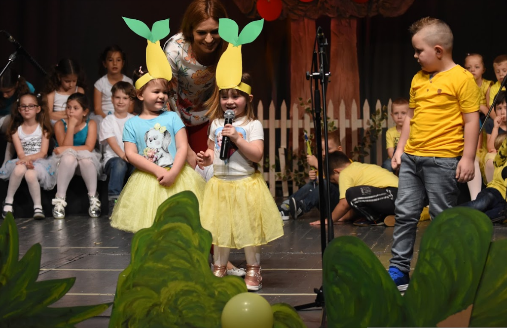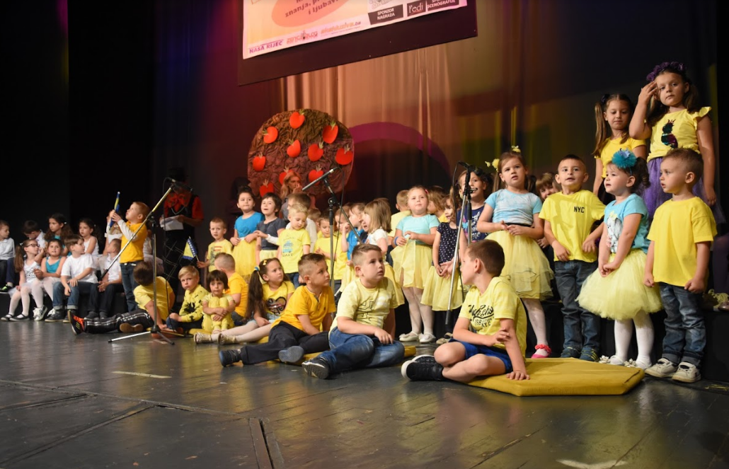 Mlađa vrtićka grupa se prvo predstavila plesnom tačkom uz navijačku himnu „Bosna je tu“, gdje su uz mnoštvo navijačkih rekvizita uz dresove dočarali atmosferu koja vlada na utakmicama naše reprezentacije u fudbalu. Izveli su još igrokaze „Dva leptira“, „Cvijet i bubamara“, „Joj, šala“, „Prijateljstvo“, recitacije „Smijeh nije grijeh“, „Velik kao dijete“, „Kruška“ i „Djeca rastu“. Horski su izveli pjesmu „Razbolje se lisica“.