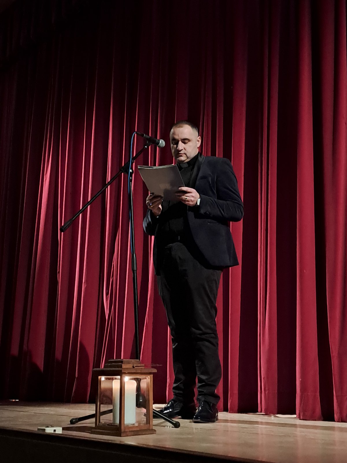 Uslijedio je pozdravni govor i čestitka ravnatelja zeničkog KŠC-a vlč. Vlatka Rosića koji je, među ostalim, poručio: „Poruka Božića, jest poruka ohrabrenja i nade u svjetliju budućnost. Isus nas svojim rođenjem podsjeća tko smo, što smo i komu pripadamo. Mi smo ljudi, stvoreni na sliku Božju – Božja smo djeca i njemu pripadamo. Novorođeni Isus nas poziva da u sebi ponovno otkrijemo da smo Božja djeca i da neprestano pobjeđujemo tamu.“ Isto tako svim kršćanima, a osobito djelatnicima i učenicima, čestitao je nadolazeći Božić, a svim ljudima dobre volje poželio je sretnu Novu godinu.