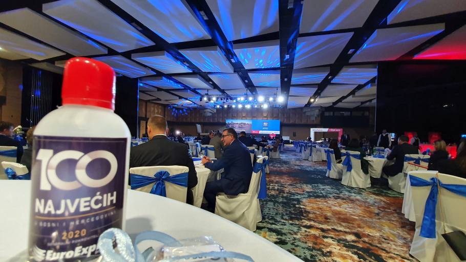 U okviru projekta “100 najvećih u BiH i regionu” koji tradicionalno organizuju Poslovne novine u suorganizaciji sa Vanjskotrgovinskom komorom BiH i bonitetnom agencijom LRC Sarajevo, te generalnim pokroviteljem EuroExpress brza pošta d.o.o. Banja Luka, jučer je u Sarajevu upriličena dodjela priznanja za najuspješnije kompanije u BiH koju je svečano otvorio Staša Košarac, ministar vanjske trgovine i ekonomskih odnosa BiH.