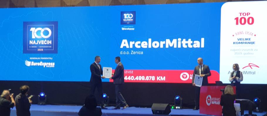 Priznanje za najvećeg izvoznika u kategoriji velikih kompanija dodijeljeno je kompaniji ArcelorMittal d.o.o. iz Zenice d.o.o., koja je u 2019. izvezla 440.499.678 KM, te kompaniji HEP-Energija d.o.o. Mostar u kategoriji srednjih kompanija, koja je zabilježila izvoz od 16.388.016 KM.
