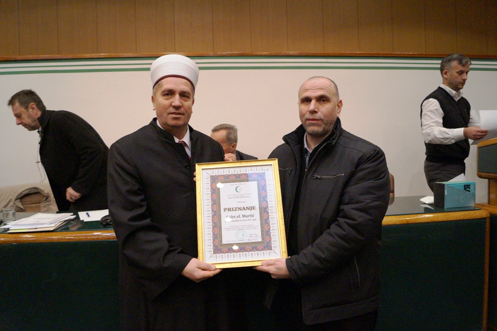 U svečanom dijelu sjednice dodijeljena su priznanja najboljem muallimu za proteklu mektebsku godinu Safet ef. Murtiću, imamu u džematu Gradišće, istaknutim aktivistima u džematima na području Medžlisa, te priznanje Muftijstva zeničkog za doprinos u radu Skupštine Medžlisa Islamske zajednice Zenica predsjedavajućem Skupštine gosp. Murisu Baručiji.