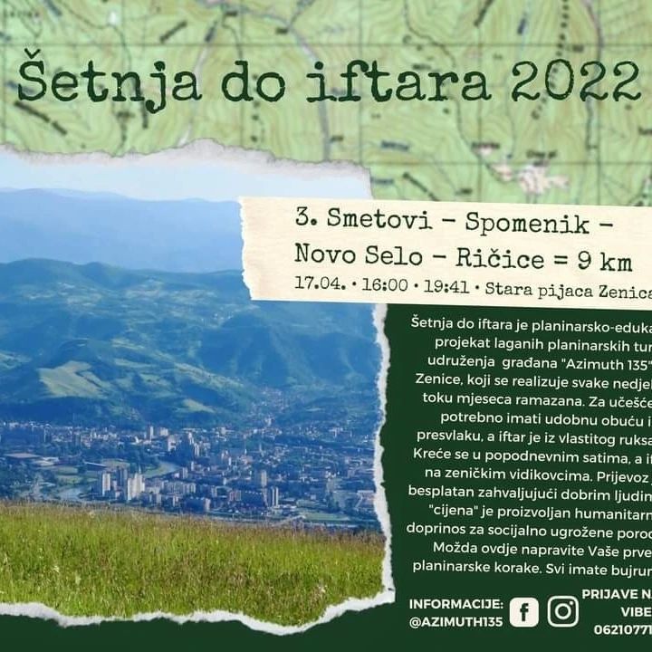 Sljedeća, Četvrta #ŠetnjaDoIftara 2022, naredne nedjelje, posljednja je za ovoramazansko izdanje, vodit će nas sa Vjetrenica preko Kubera do uzvišenja Golubak iznad Krivača. Uskoro ćemo objaviti najavu.