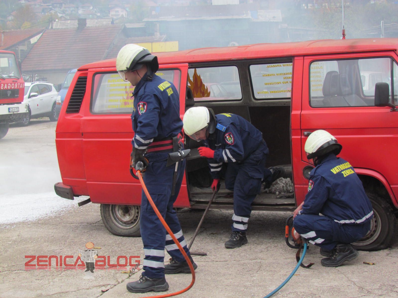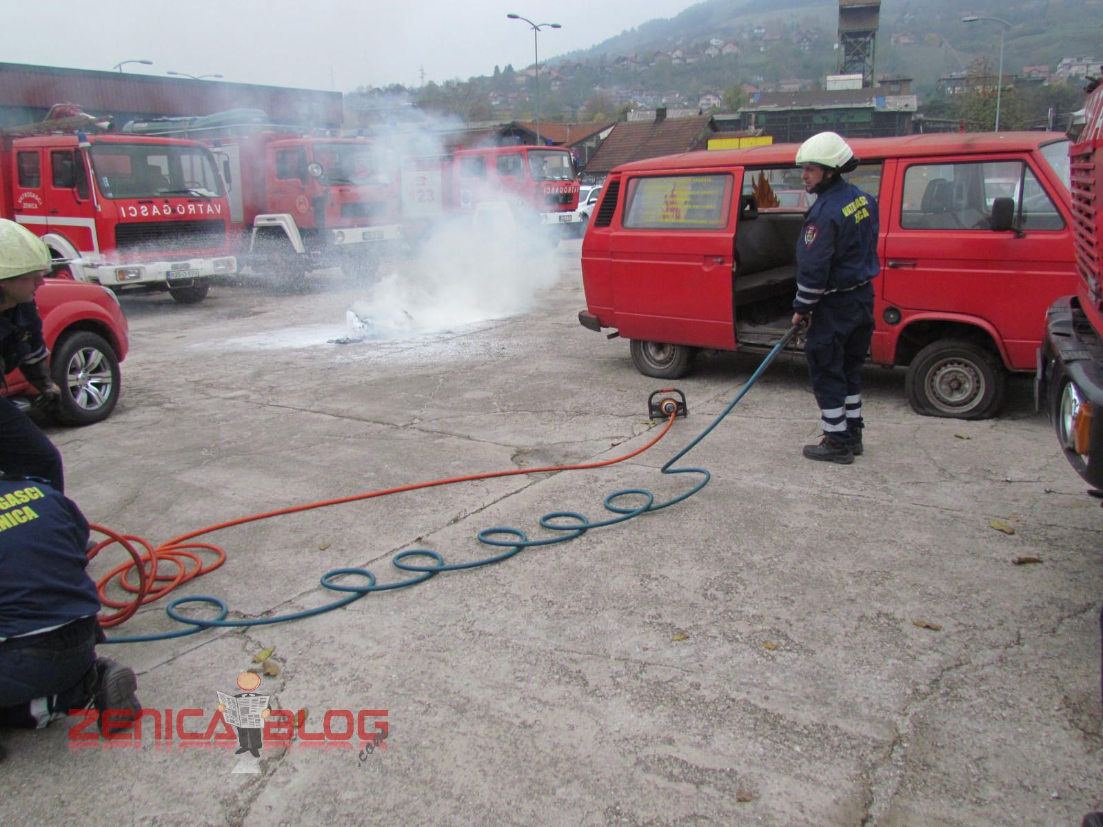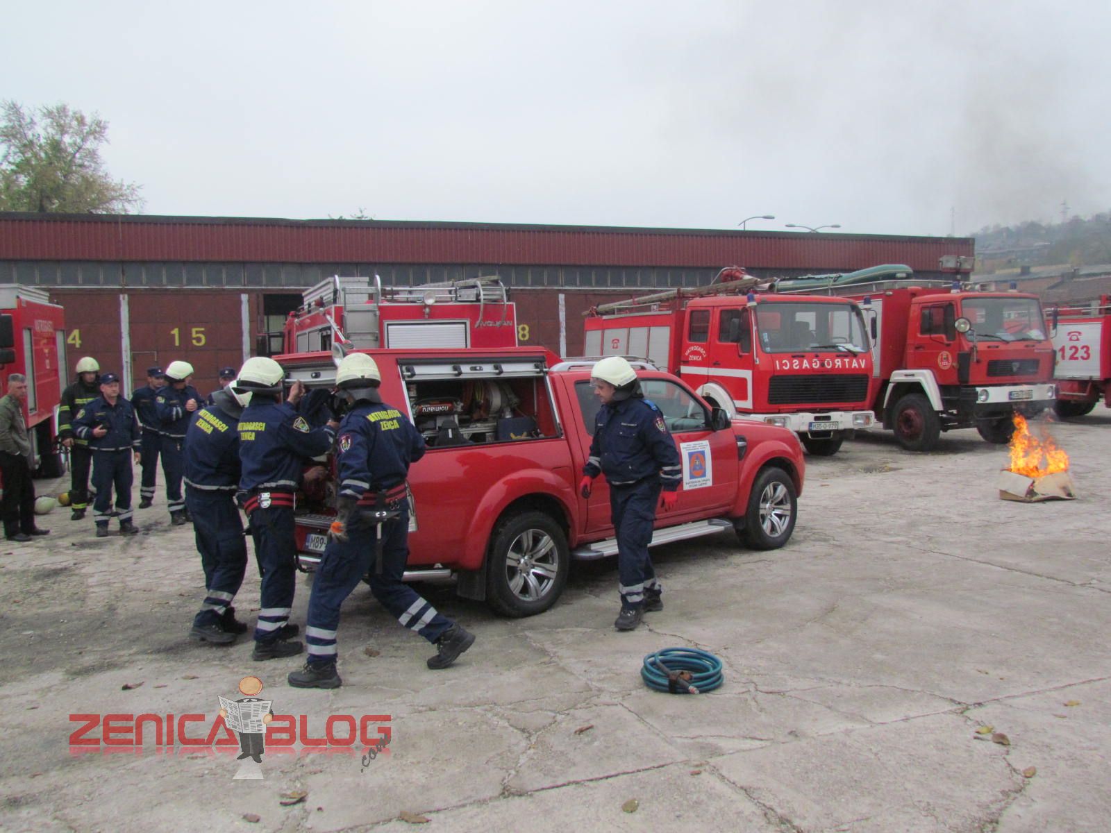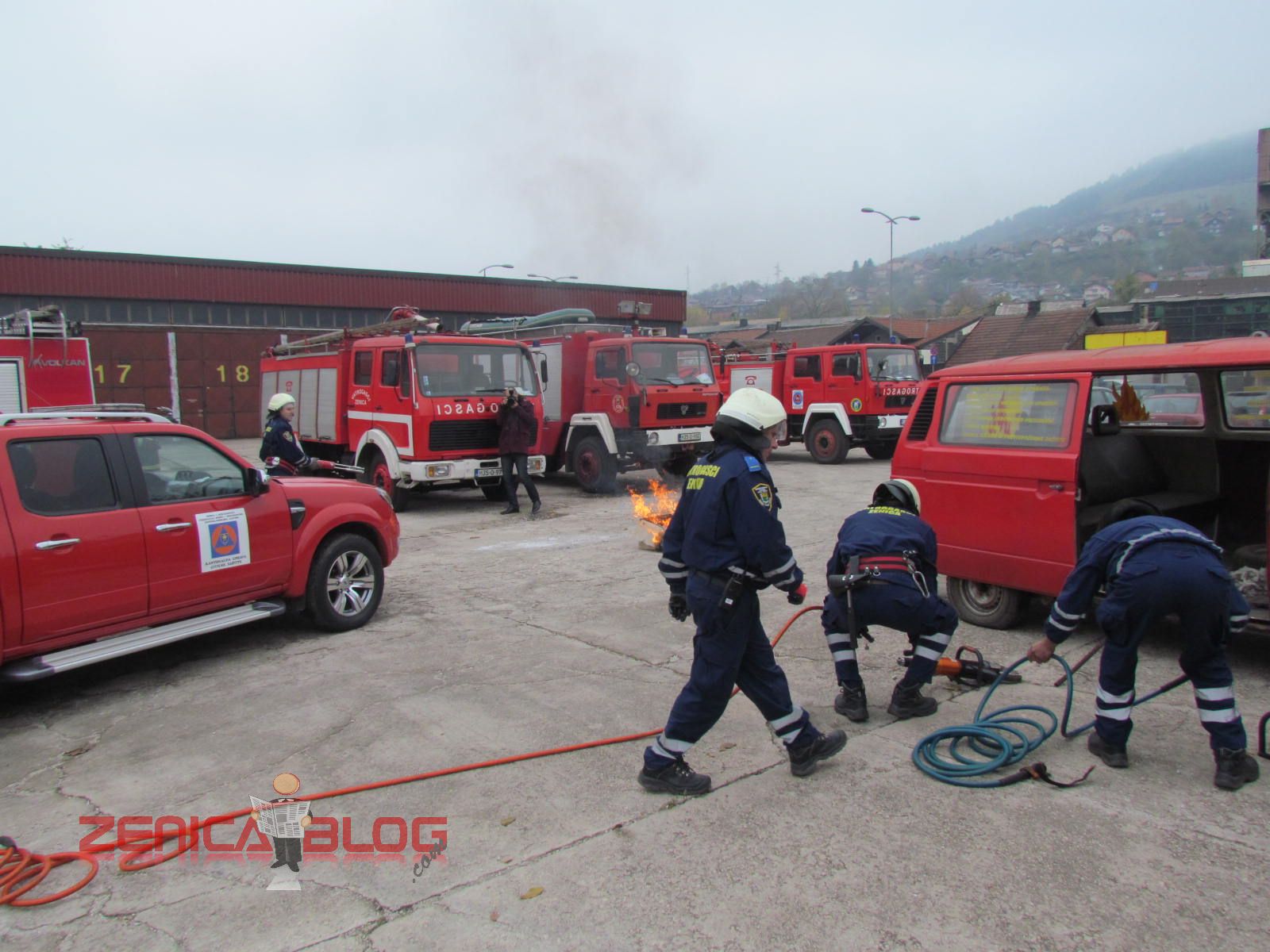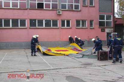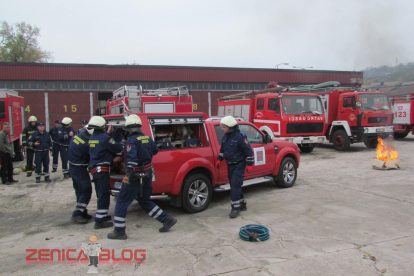 “Danas su sva četiri naša odjeljenja prezentirali u okviru redovnih aktivnosti u ovom mjesecu četiri vatrogasne vježbe koje su najčešće i koje se najviše koriste u našem radu. Prva vježba je bilo spašavanje sa visina, tačnije sa trećeg sprata gdje je izbio požar. Koristili smo vatrogasne ljestve koje su jedne od najmodernijih u BiH. Druga vježba je bilo također spašavanje sa visina, ali koristeći vatrogasni jastuk koji veoma rijetko koristimo, ali smo pokazali da i takvu opremu imamo na raspologanju. Treća vježba je bila jedna od najtežih vježbi, podrumski požar koji je veoma rizičan zbog velikih količina dima i opasnosti od gušenja u takvim zatvorenim prostorima. Četvrta vježba je bila tehnička intervencija u automobilskoj nesreći. Svjedoci smo da vatrogasci danas sve češće učestvuju u ovakvim akcijama i zbog toga smo željeli pokazati da mi možemo vrlo brzo i efikasnosno da djelujemo” – izjavio je Derviš Dedić koordinator Profesionalne vatrogasne jedinice Zenica.