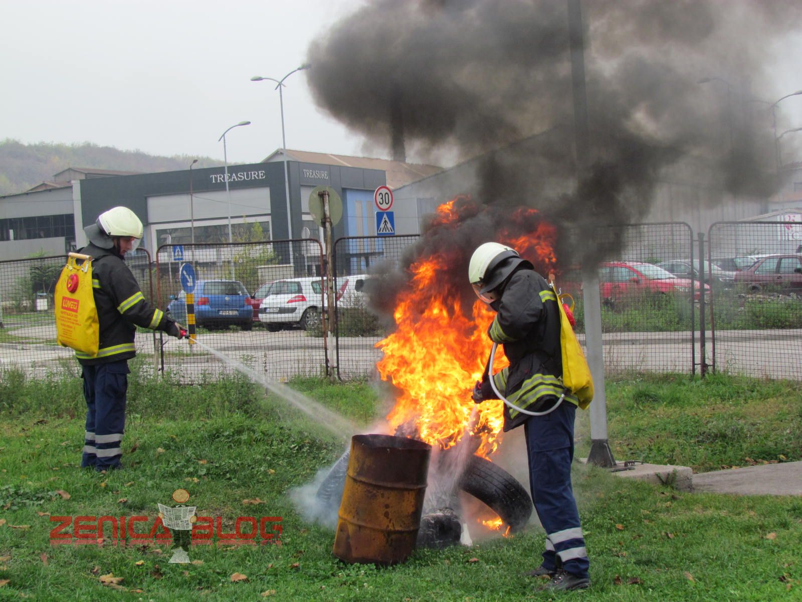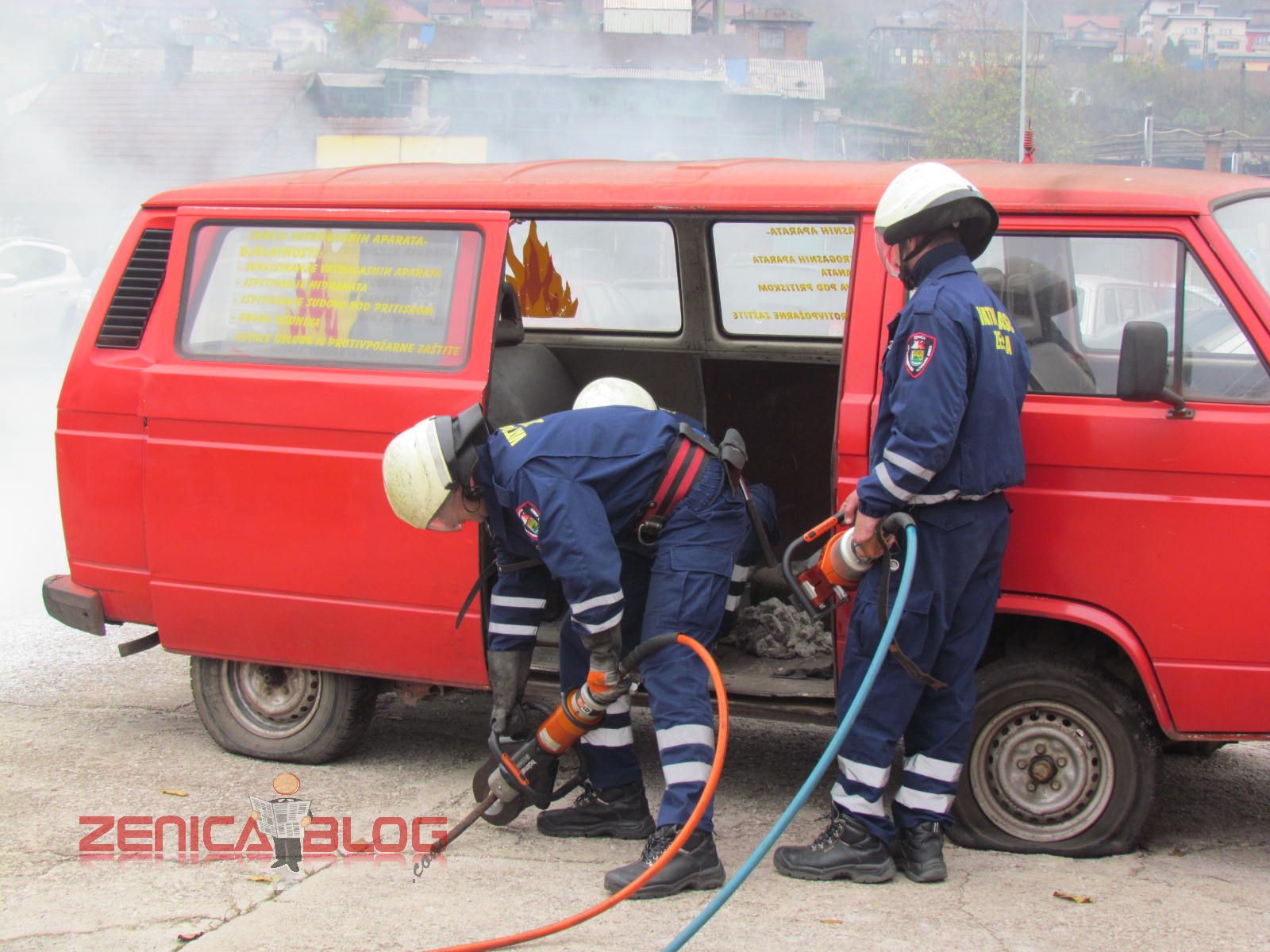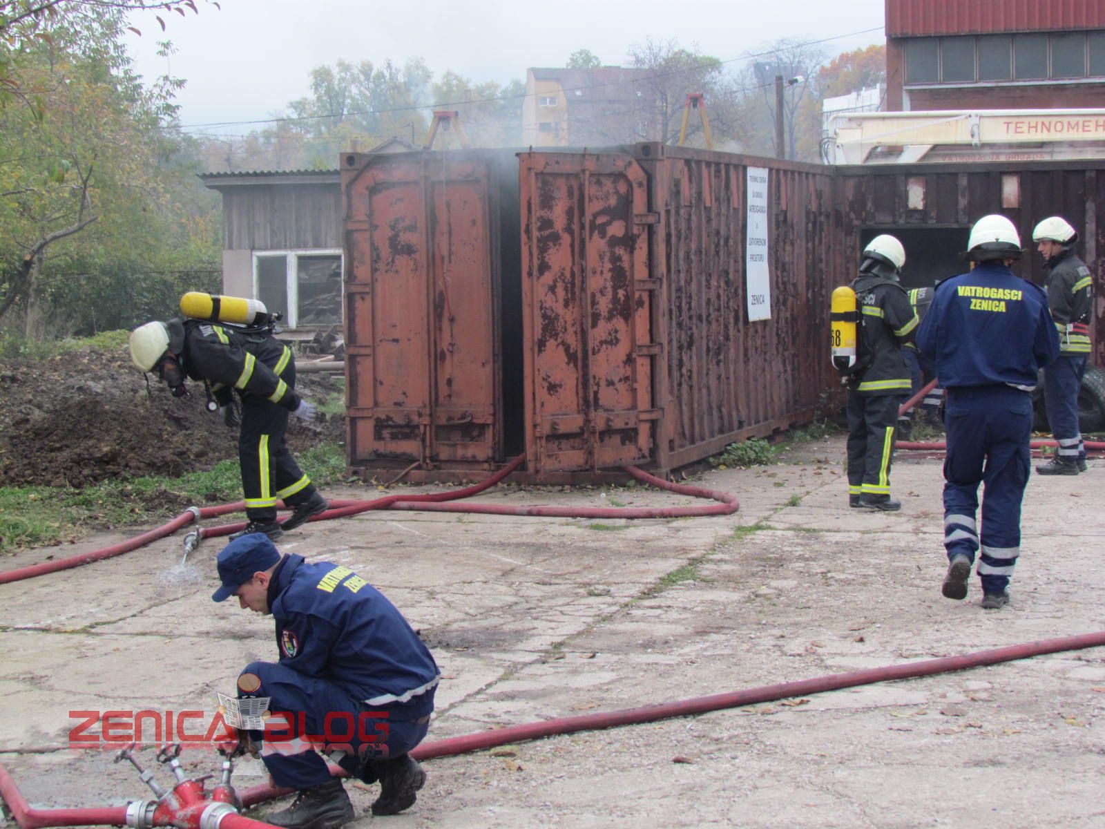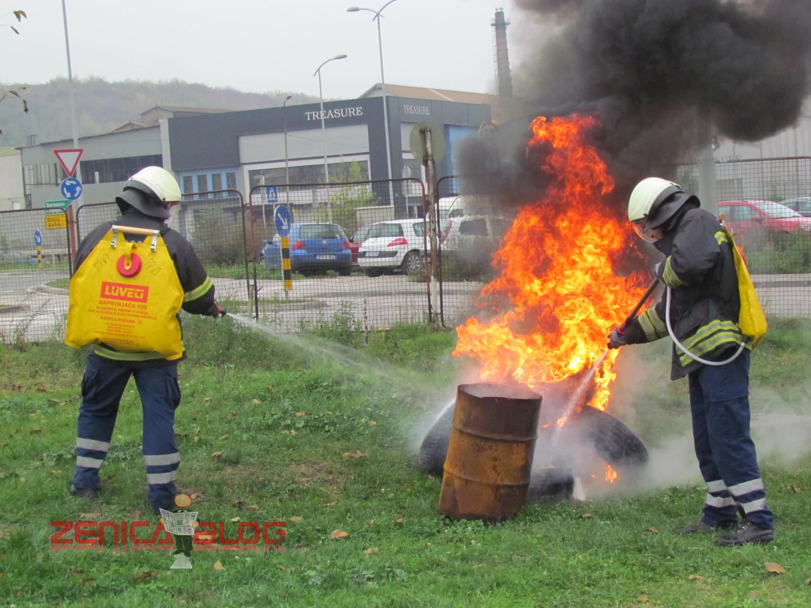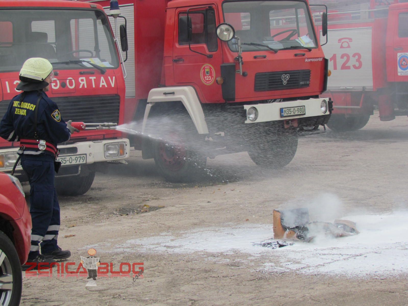 “Danas su sva četiri naša odjeljenja prezentirali u okviru redovnih aktivnosti u ovom mjesecu četiri vatrogasne vježbe koje su najčešće i koje se najviše koriste u našem radu. Prva vježba je bilo spašavanje sa visina, tačnije sa trećeg sprata gdje je izbio požar. Koristili smo vatrogasne ljestve koje su jedne od najmodernijih u BiH. Druga vježba je bilo također spašavanje sa visina, ali koristeći vatrogasni jastuk koji veoma rijetko koristimo, ali smo pokazali da i takvu opremu imamo na raspologanju. Treća vježba je bila jedna od najtežih vježbi, podrumski požar koji je veoma rizičan zbog velikih količina dima i opasnosti od gušenja u takvim zatvorenim prostorima. Četvrta vježba je bila tehnička intervencija u automobilskoj nesreći. Svjedoci smo da vatrogasci danas sve češće učestvuju u ovakvim akcijama i zbog toga smo željeli pokazati da mi možemo vrlo brzo i efikasnosno da djelujemo” – izjavio je Derviš Dedić koordinator Profesionalne vatrogasne jedinice Zenica.