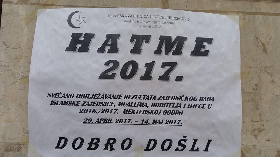 FOTO: Održane hatme – završni ispit polaznika mektebske pouke u džematu „Nova Zenica“ – Kao što je ranije najavljeno, danas. subota 29.04.2017. godine, u džematu „Nova Zenica“ održane su hatme – završni ispit polaznika mektebske pouke, treće po redu od formiranja džemata.
