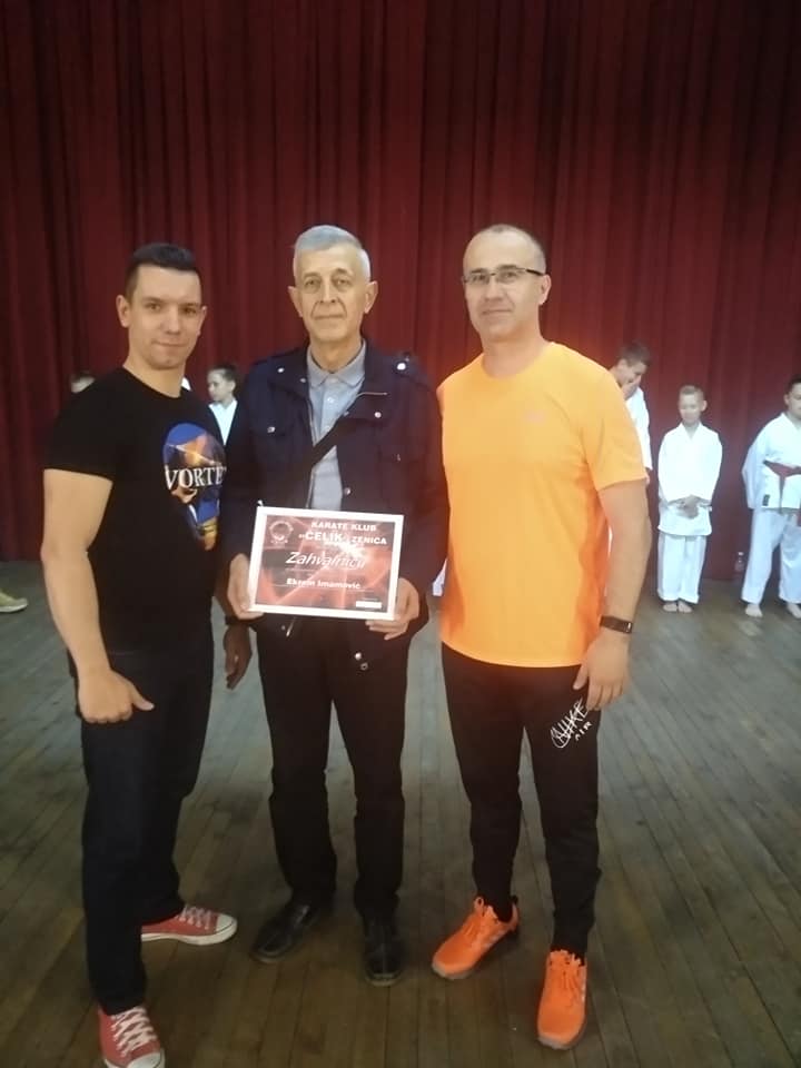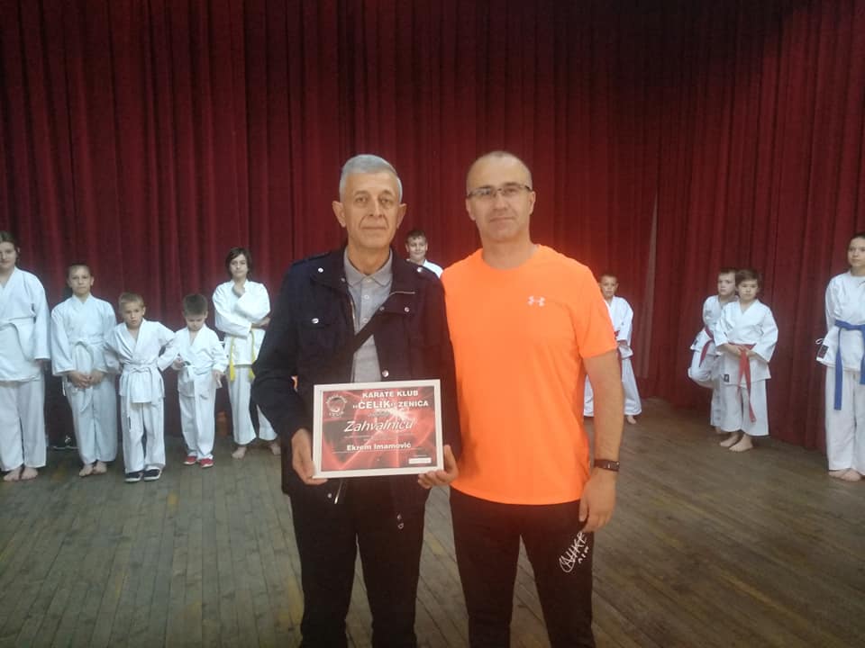 Nakon toga dodijeljeno je i nekoliko priznanja za kolektive i pojedince, koji pomažu razvoju i afirmaciji karate sporta u Zenicu, te daju nesebičnu podršku Karate klubu Čelik Zenica. Među nagrađenim je i moja malenkost, Ekrem Imamović, urednik sporta na portalu Zenicablog.