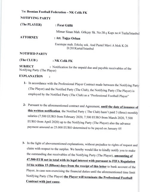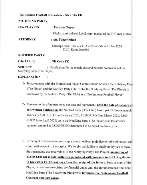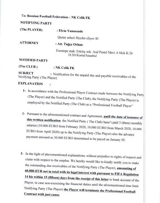 Kako SCsport ekskluzivno saznaje, Olgun je tada ovlastio advokaticu Tugce Orhan iz Turske da pokrene međunarodne postupke protiv Čelika za igrače Elvin Yunuszade, Firat Gullu i Emirhan Topcu.