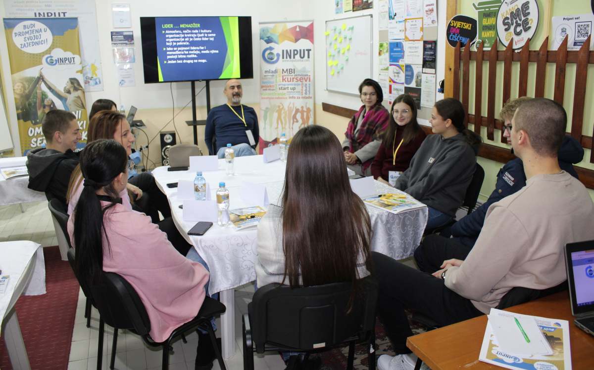 Nakon toga od 08.12. do 10.12.2023. godine je održana Obuka za omladinske lidere/ke u zajednici iz 12 lokalnih sredina, gdje su mladi imali priliku da u organizaciji Centra za mlade INPUT, u okviru trodnevnog treninga, uče o omladinskom radu, aktivizmu, volonterizmu, kako biti omladinski lider/ka, ključene tehnike rada sa mladima, motivacija i pokretanje mladih ka aktivizmu, te posljednji dan treninga pisanje i upravljanje projektnim ciklusom. Kroz trening mladi su razvijali svoje vještine kroz praktične primjere i zadatke uz savjete i upute stručnjaka iz oblasti omladinskog rada, koji su podijelili svoje bogato iskustvo u radu sa mladima i potaknuli naše učesnike da se dalje razvijaju u tom pravcu. Kroz praktičnu simulaciju mladi su imali priliku da se pokažu kao budući lideri/ke svojih zajednica, te pokušaju predložiti rješenje problema koje su uočili ili se suočili sa istim u svojoj okolini i društvu. Imali su priliku steći osnovna znanja u pisanju i upravljanju projektnim ciklusom, te kako taj projekat predstaviti svom društvu i dokazati da su upravo oni ti koji su sposobni napraviti promjene.