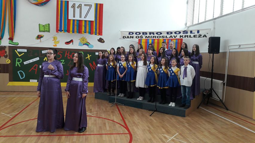FOTO: OŠ “Miroslav Krleža” 117. rođendan – Pjesmom, plesom i veseljem OŠ “Miroslav Krleža” obilježila je 117. rođendan na treći dan proljeća. Svečanosti su prisustvovali roditelji, nastavnici i brojni gosti. Priredbu je otvorio hor škole, a onda su učenici muzičkim performansima, recitacijama i glumom oduševili prisutne i dokazali da je ova škola izvor mašte, kreativnosti i talenta i da učenici osjećaju ljubav prema svojoj školi.