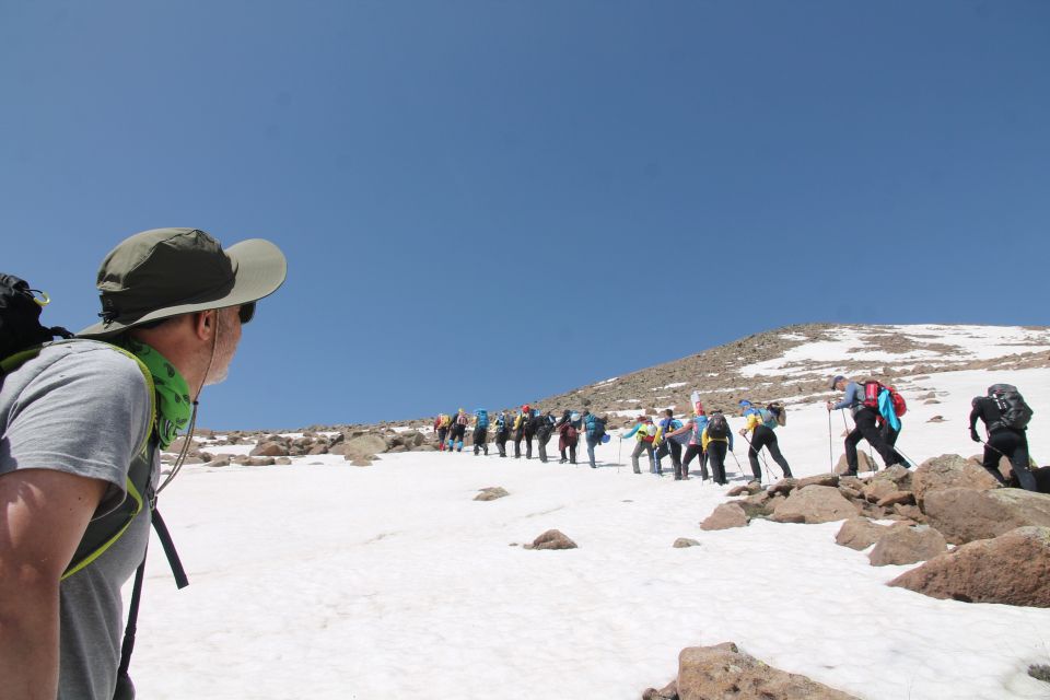 Jedan dio grupe je ostao u hotelu spavati i odmarati a poslije je obilazio grad Aksaray. Veći dio grupe (23 člana BiH Explorera), se autobusom se prebacio do sela koje se nalazi u blizini planine Hasandag čiji je najveći vrh 3.256 mnv a koj je bio naš cilj. Iz sela smo nastavili svoj put prema planini ali sada sa dva velika traktora koje nam je obezbjedio našr prijatelj i planinarski vodič Nurullah Coban iskusan planinar koji je do sada se na planinu Hasandag popeo preko 100 puta. Sa traktorima smo se vozili 45 minuta do lokacije odakle je krenuo naš dugi uspon. Planina Hasandag je vulkanska planina koja je nekada bila aktivna, te je zbog toga prostor kojim smo se kretali bio prepun kamenjarazličite veličine i bez drveća ili rastinja kojim bi smo se na momente zaštitili od sunca ili kiše. Istina kiše nije bilo ali sunca jeste na našu raddost. Područje na planini Hasandag je veoma negostoljubivo, i veoma teško za planinariti. Zbog toga smo se potrudili da slušamo instrukcije našeg vodiča i da budemo disciplinovani. Znali smo da moramo biti strpljivi, i da će ovaj uspon za nas biti pravi test izdržljivosti i psihofizičkih sposobnosti. Uspon je trajao skoro devet sati. Veći dio članova ove naše planinarske avanture do sada nikada nije bio na ovoj nadmorskoj visini, i nismo znali da li ćemo moći doći do vrha. Međutim, na našu radost svih 23 planinara su uspjeli da se popnu na sami vrh planine Hasandag-na 3.256 metara nadmorske visine. Na vrhu planine smo uživali u pogledu, odmoru i hrani koju smo ponijeli da obnovimo snagu koja nam je bila neophodna za silazak ove velike planine.