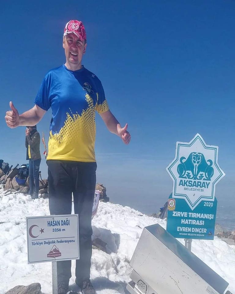 Na vrhu Hasandaga smo ostavili i svoj trag. Iz Zenice smo ponijeli kamenu ploču od poznatog kamena iz majdana sela Mošćanica. Kamenu ploču tešku oko 5 kg sam nosio u ruksaku, i uspio sam uz ogroman trud da je i donesem na sami vrh planine. Na kamenoj ploči smo postavili natpis na turskom jeziku sa čestitkom za 100 godina od osnivanja Republike Turske i sa zastavama BiH i Turske.