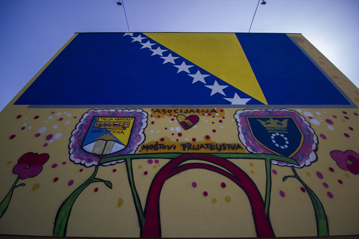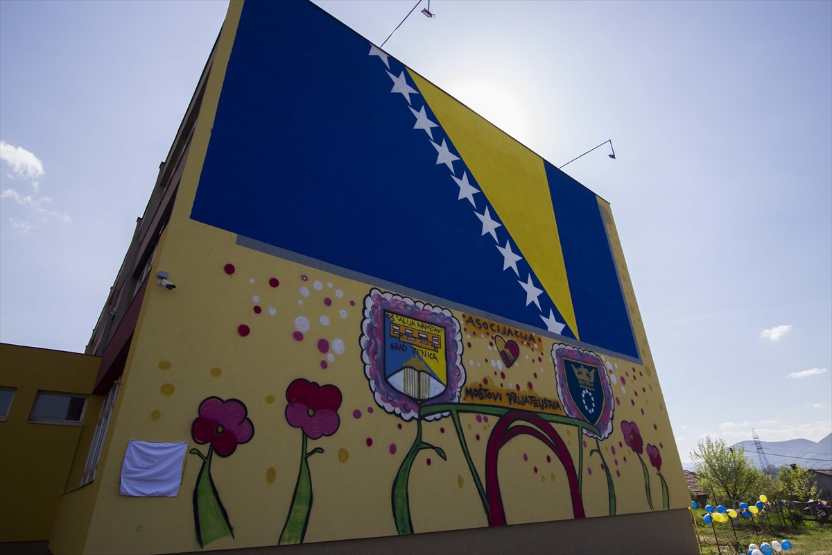FOTO: otkrivanjem ploče i murala sa zastavom BIH ozvaničen završetak radova u Peharama – Završetak radova na novoj fasadi i energetskom utopljavanju Osnovne škole Alija Nametak u Zenici ozvaničen je otkrivanjem ploče i murala sa zastavom Bosne i Hercegovine, koji je vidljiv s magistralnog puta M-17, javlja Anadolu Agency (AA).