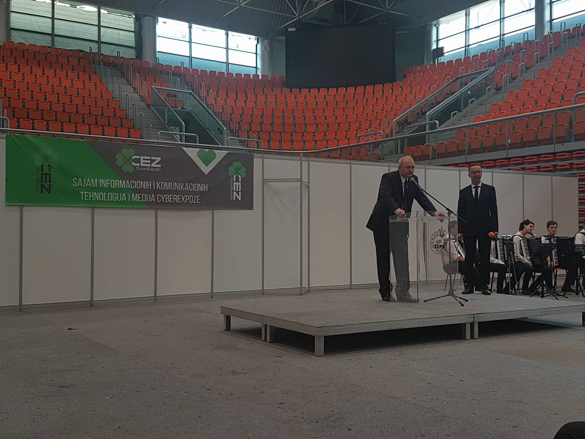 “Meni je čast doći ovdje i otvoriti ovaj sajam. Često mi se u životu dešavalo da ljudi govore za projekte koje ja prvi put otvaram da ne mogu sprovesti projekat taj u djelo. Najveća motivacija mi je uvijek kad mi neko kaže da ne mogu nešto napraviti. Ovaj sajam je doista vrhunski sajam edukativnog karaktera. U IT sektoru u BiH nedostaje 6000 radnika. Mi moramo brendirati BiH. Kombinacija tri stvari, realnog sektora, akademske zajednice i vlasti dovodi do toga da možemo prevazici sve prepreke. Jedini resurs koji nam nedostaje je vrijeme, jer smo ga puno izgubili. Ja se stavljam organizatorima uvijek na raspolaganje i velika mi je čast proglasiti Sajam informacionih i komunikacijskih tehnologija i medija “CYBEREXPOZE” otvorenim.”