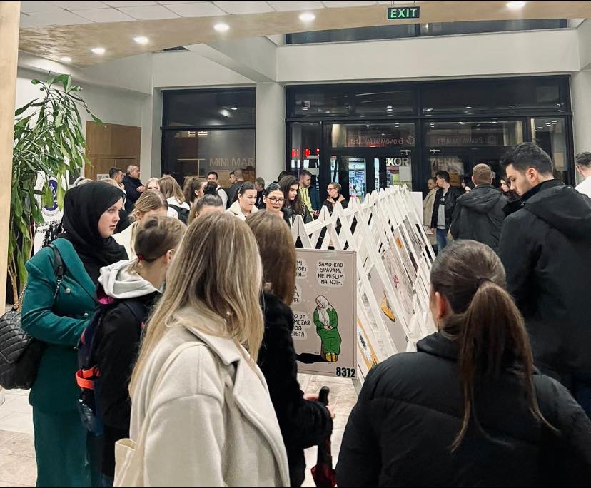 Sinoć je u organizaciji Evropskog udruženja studenata prava Zenica, u suradnji sa Pravnim fakultetom Univerziteta u Zenici i Bosanskim kulturnim centrom “Alija Izetbegović” Kalesija upriličeno otvaranje izložbe “Podsjećanje” ilustratora Admira Delića.