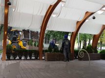 Od otvorenja suočeni smo sa opstrukcijama, te prijetnjama da će nam dio bašte, prepoznatljiv u gradu, ali i šire, biti srušen, iz čiste obijesti lokalnog moćnika tada vladajuće, SDA stranke, čiji podli i bijedni apetiti sežu mnogo dalje od vozačkih sposobnosti već raspadnute prijevozničke firme, kojom je neuspješno rukovodio. Uz pomoć korumpiranih inspektora iz gradske uprave, te zloupotreba lokalne policije i rođačkih veza sa određenim brojem “ljudi u plavom” više od tri godine su pokušavali da dokažu nedokazivo, a to je da ljudi šetaju fasadom, da je stanarima zgrade u kojoj moja firma i moja porodica imaju više od 50 posto poslovnog i stambenog prostora, manjinski vlasnik treba i treći adekvatan prilaz.