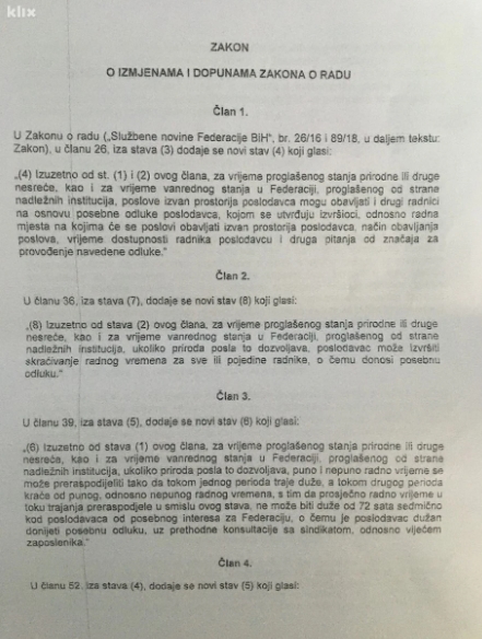 FOTO: Ovo je tekst izmjena Zakona o radu FBiH