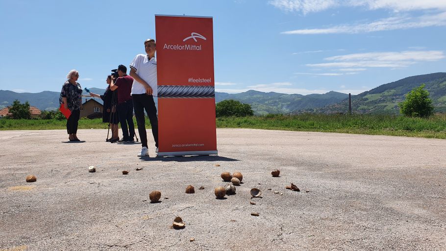 Direktor ArcelorMittala Zenica Nikhil Mehta je, u skladu s tradicijom iz svoje domovine Indije, za “dobru sreću na početku posla”, zajedno s domaćinima te premijerom Vlade ZDK Mirnesom Bašićem i resornim ministrom obrazovanja ZDK prof. dr. Spahijom Kozlićem, na starom sportskom poligonu razbio kokosov orah.