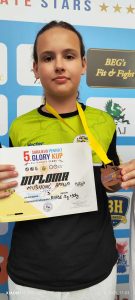 - Merjem Bošnjak u borbama, kategorija djevojčice 12 godina preko 50 kilograma.