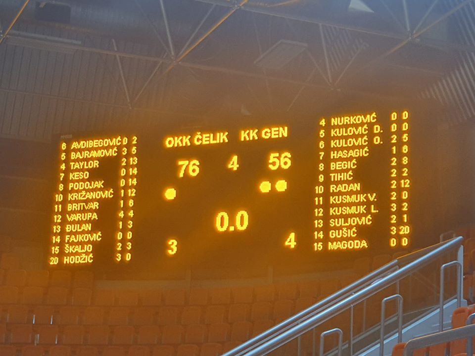 Rezultat: OKK Čelik – KK Gen 76:56 (20:11), (20:18), (20:17), (16:10);