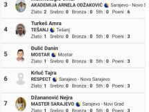 – Amina Mušinović drugo mjesto i srebrena medalja u borbama djevojčice 10 godina do 37 kg, treće mjesto i bronzana medalja u katama djevojčice 10 godina