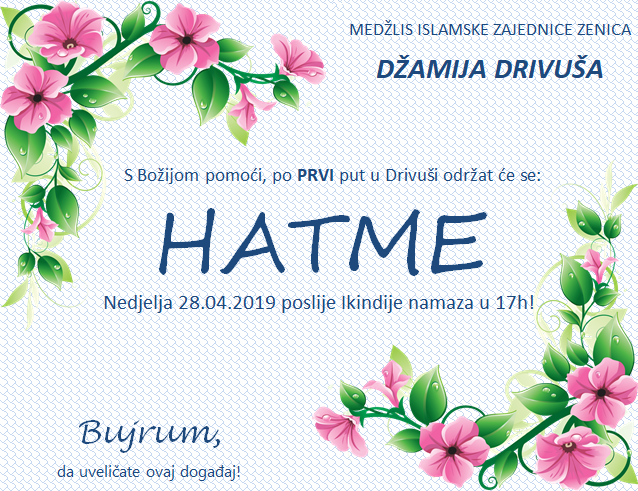 FOTO: Po prvi put hatme u džamiji Drivuša – Danas 28.04.2019. god. poslije Ikindija namaza održan je završni ispit polaznika mektebske nastave u džamiji Drivuša- hatme! Moramo napomenuti da su ovo prve hatme od kada postoji ovo mjesto! Ovo je istorijski događaj kako za ovo mjesto tako i za polaznike mekteba. Mualim polaznika mekteba u Drivuši je Halid ef. Dizdarević imam džemata Gnjusi.(op.a. Drivuša nije džemat)