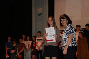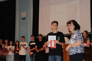 Ovom prigodom najuspješnijim učenicima uručene su nagrade kao i nagrade učenik s posebnim priznanjem Kenanu Bjeliću, odjel IX a i učenica generacije Anji Popović, odjel IX b.