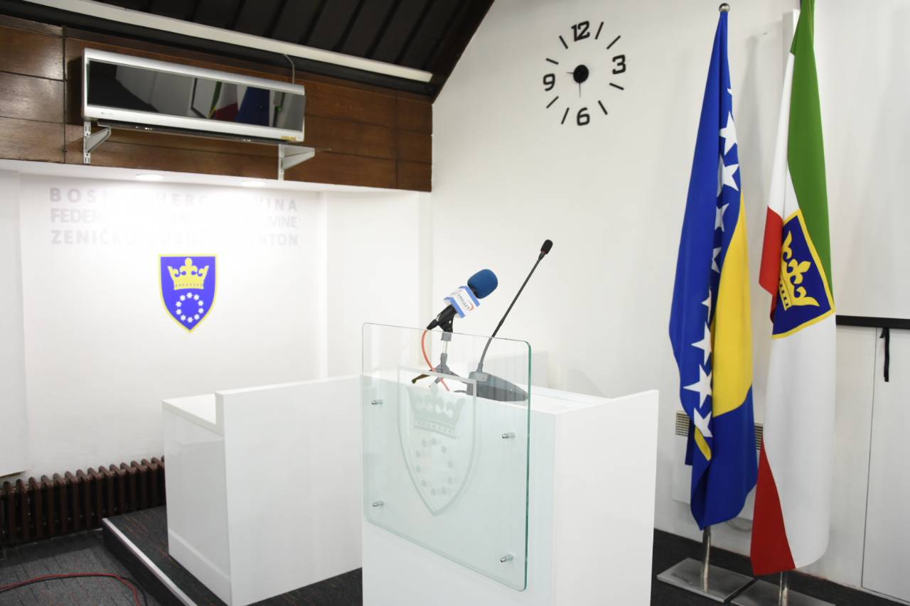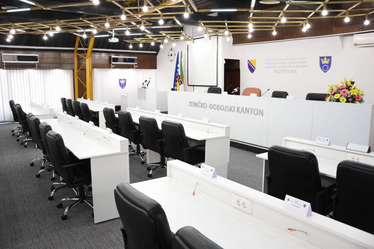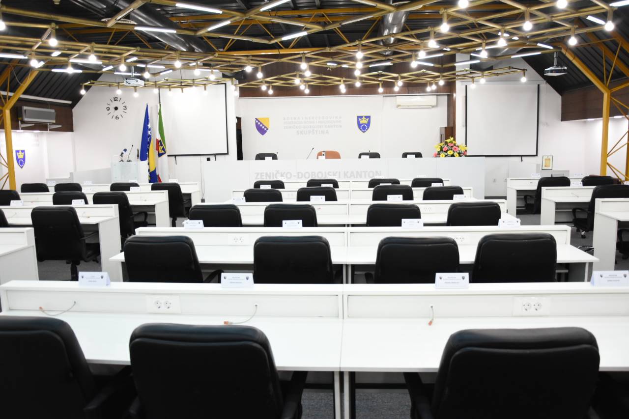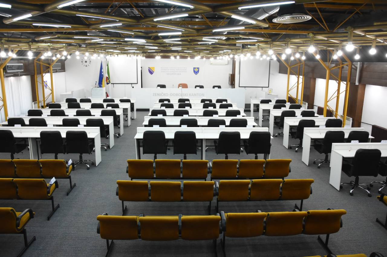 FOTO: Pogledajte kako izgleda rekonstruisana sala 301. u zgradi RMK Skupštine i Vlade ZDK – Sala 301, u sjedištu Vlade Zeničko-dobojskog kantona, od danas je ponovo u funkciji nakon što je okončana njena rekonstrukcija. U projekat modernizacije uloženo je oko 70 hiljada maraka, pri čemu su, među ostalim, stvoreni uslovi za rad e-parlamenta i lakši rad novinarskih ekipa. Zastupnici će moći koristiti laptope, a naknadno će biti omogućeno preuzimanje tonskog i video signala iz skupštinske sale.