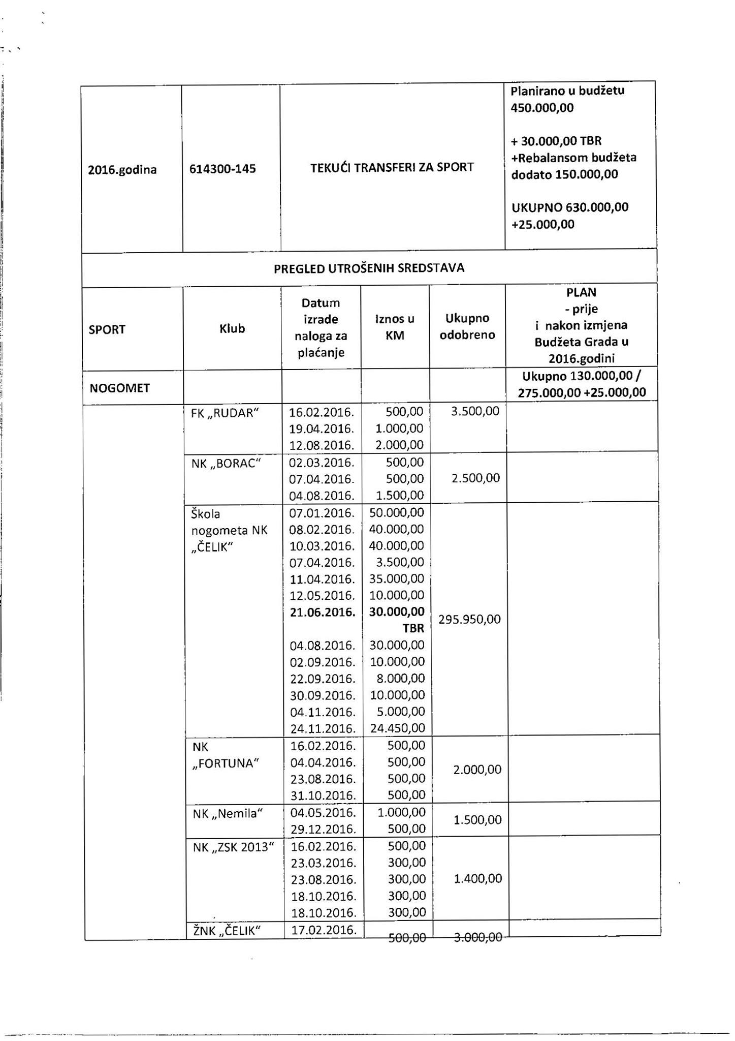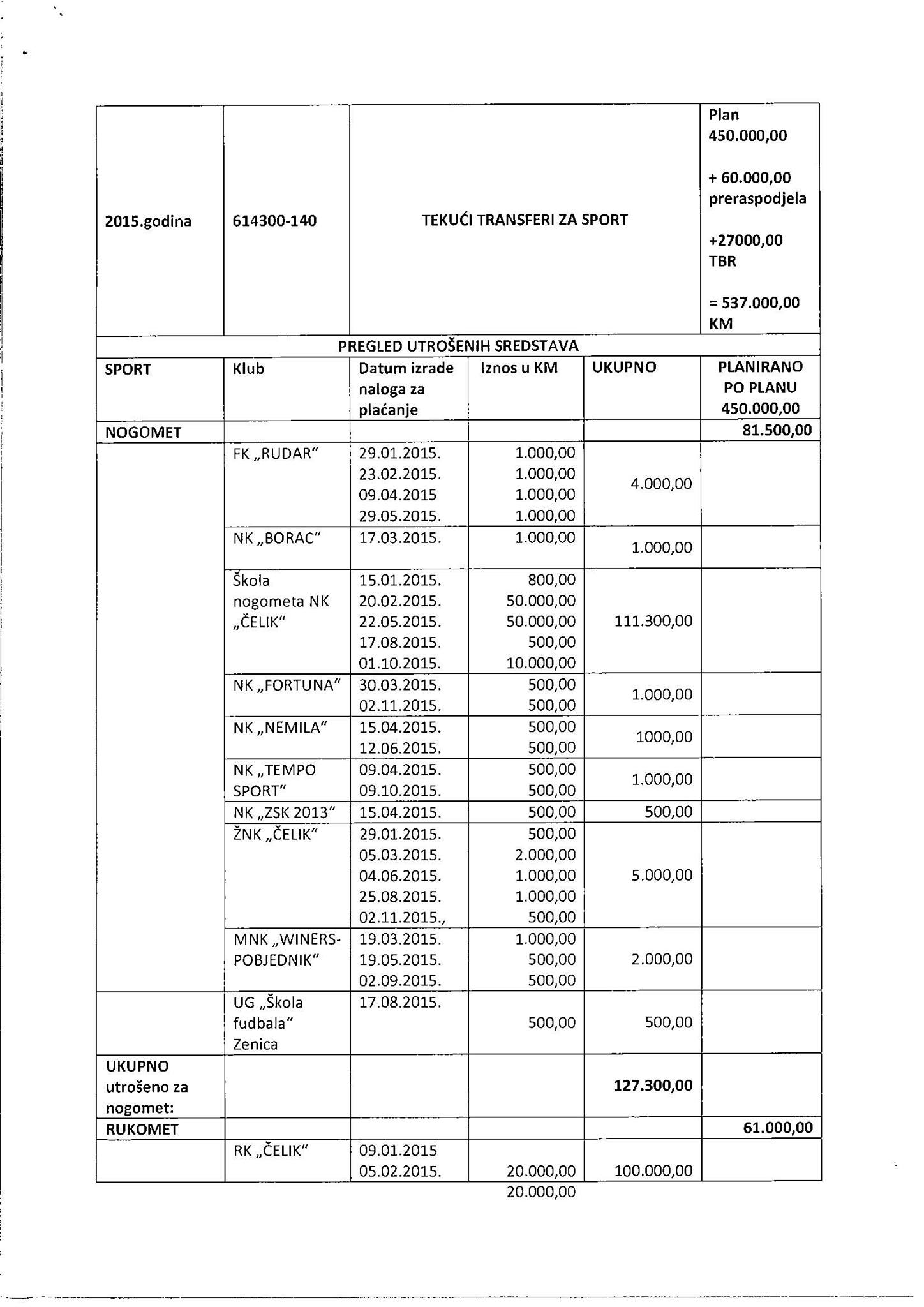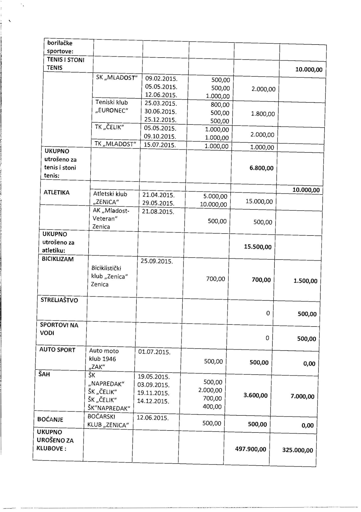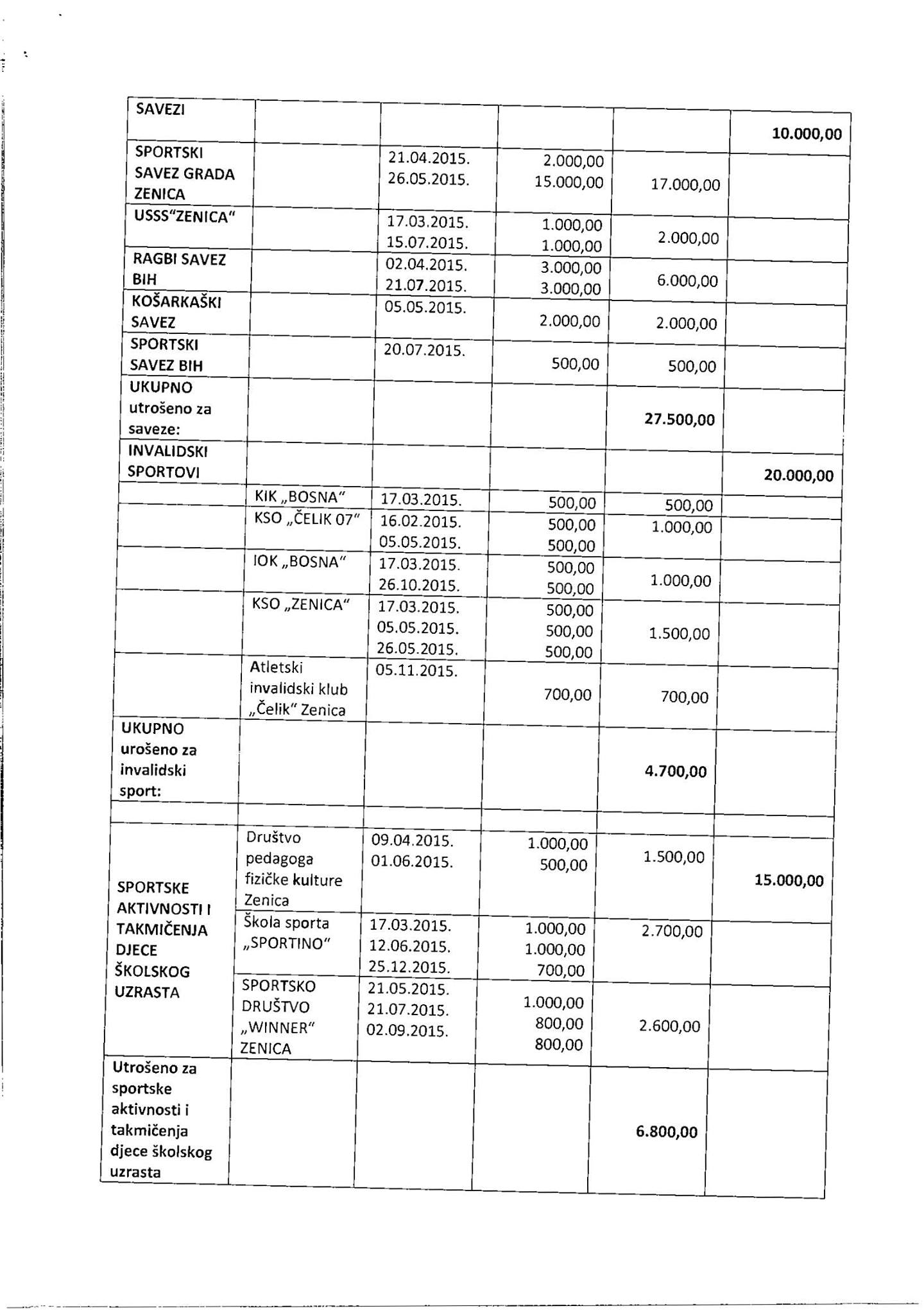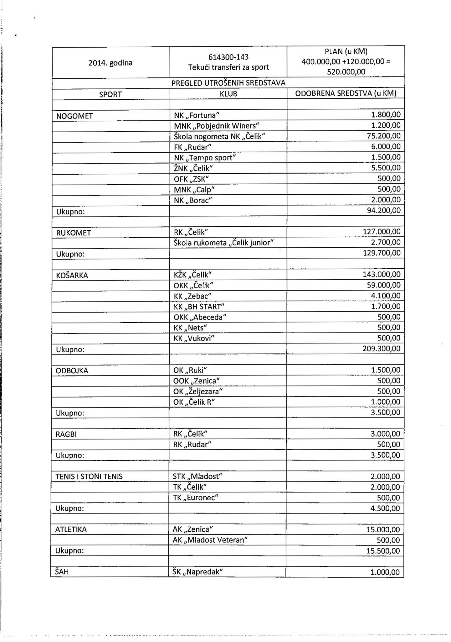 FOTO: pogledajte koliko je ko dobio novca iz oblasti sporta u Zenici – U prednovogodišnjem intervjuu Zenicablogu gradonačelnik Zenice Fuad Kasumović obećao je da će javno obznaniti koliko je ko dobio novca iz oblasti sporta u proteklim godinama. Uprava Grada Zenica objavila je danas spisak isplate iz oblasti “Tekuća sredstva za sport prema raspodjeli Službe za društvene djelatnosti i socijalnu zaštitu u periodu od 2014. do 2016.”. Pogledajte –