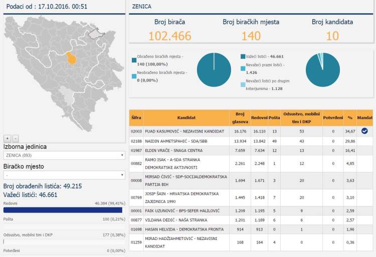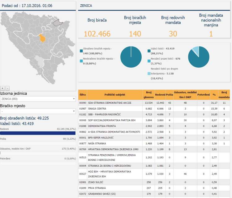 Foto: pogledajte utvrđene rezultate CIK-a za Zenicu i imena budućih vijećnika Gradskog vijeća – Centralna izborna komisija BIH (CIK) je objavila utvrđene rezultate Lokalnih izbora 2016. u Zenici, koji su održani 2. oktobra. Članovi CIK-a jednoglasno su primili k znanju Izvještaj o radu Glavnog centra za brojanje do utvrđivanja rezultata lokalnih izbora.