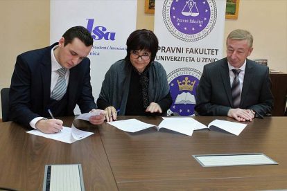 Sporazum su potpisali prof.dr.sc. Enes Bikić, dekan Pravnog fakulteta, Azra Močević, direktorica Kantonalnog zavoda i Semir Mujezinović, predsjednik ELSA Zenica.