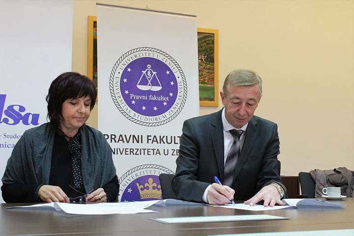 Sporazum su potpisali prof.dr.sc. Enes Bikić, dekan Pravnog fakulteta, Azra Močević, direktorica Kantonalnog zavoda i Semir Mujezinović, predsjednik ELSA Zenica.