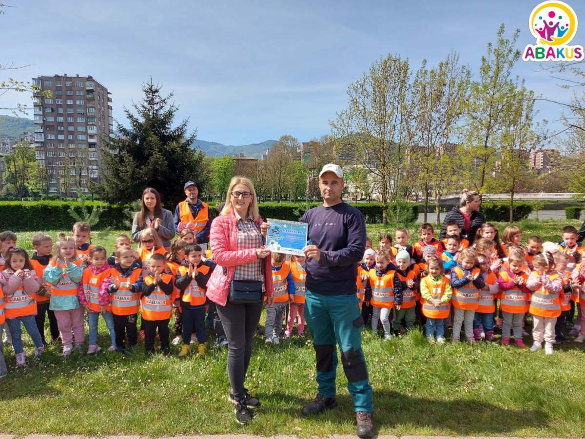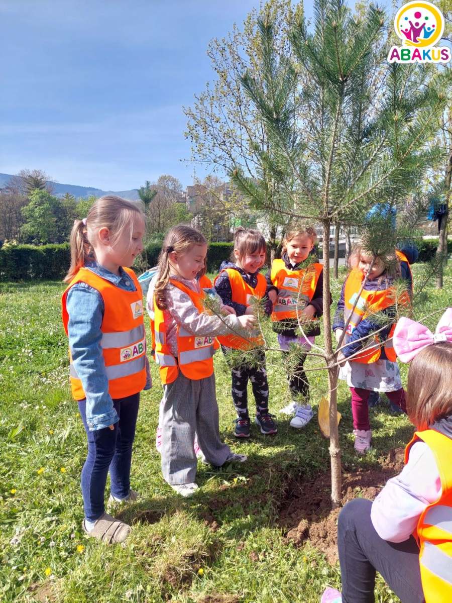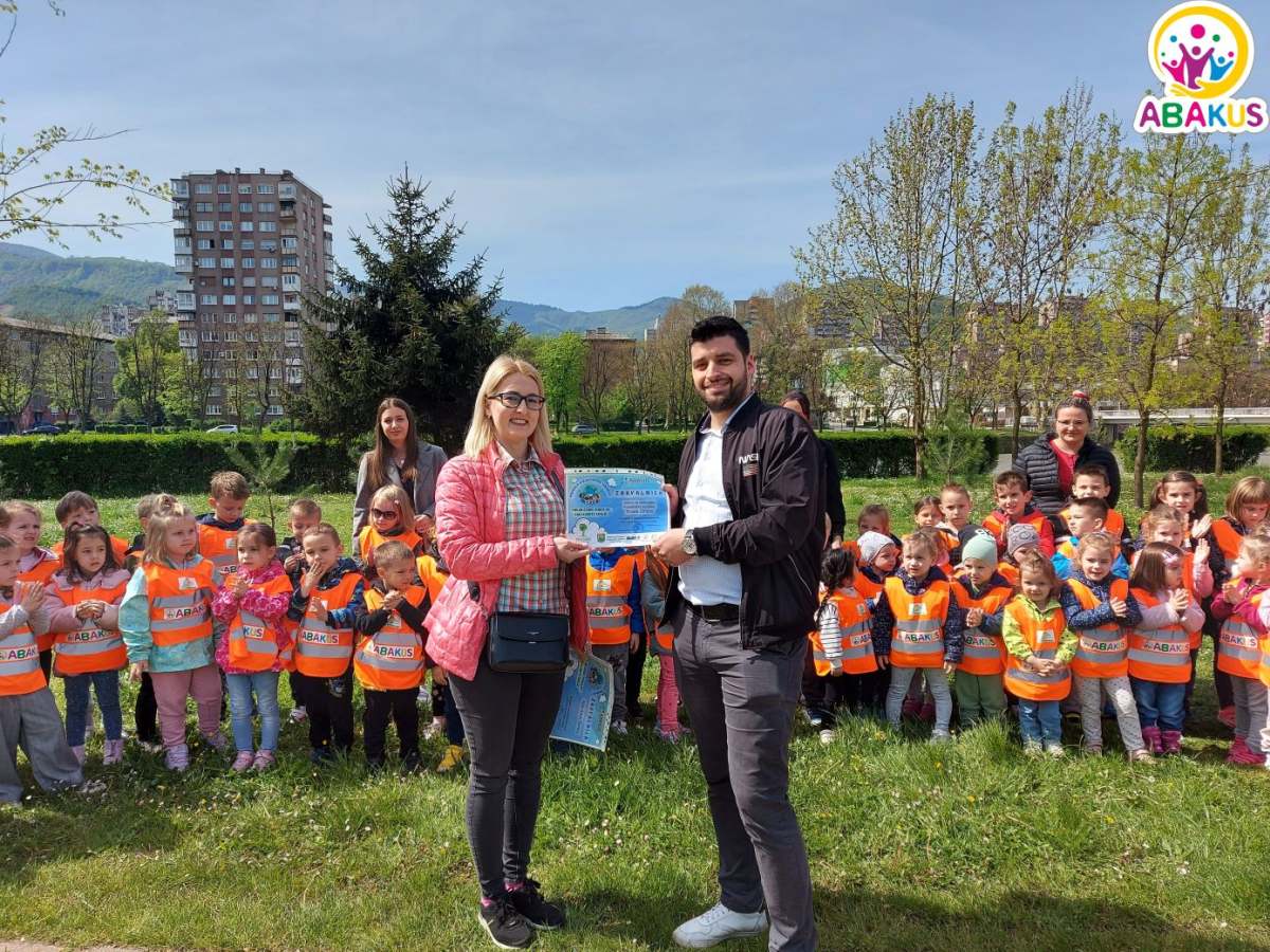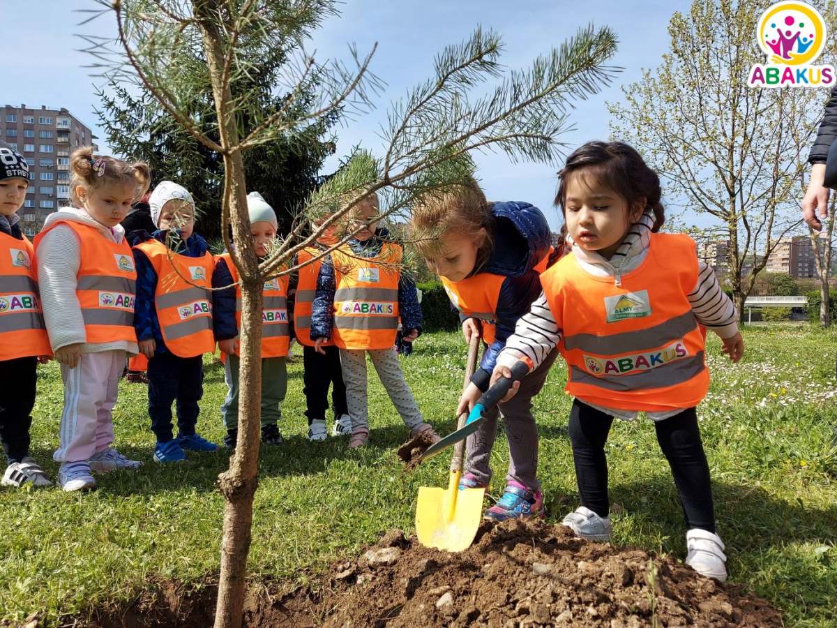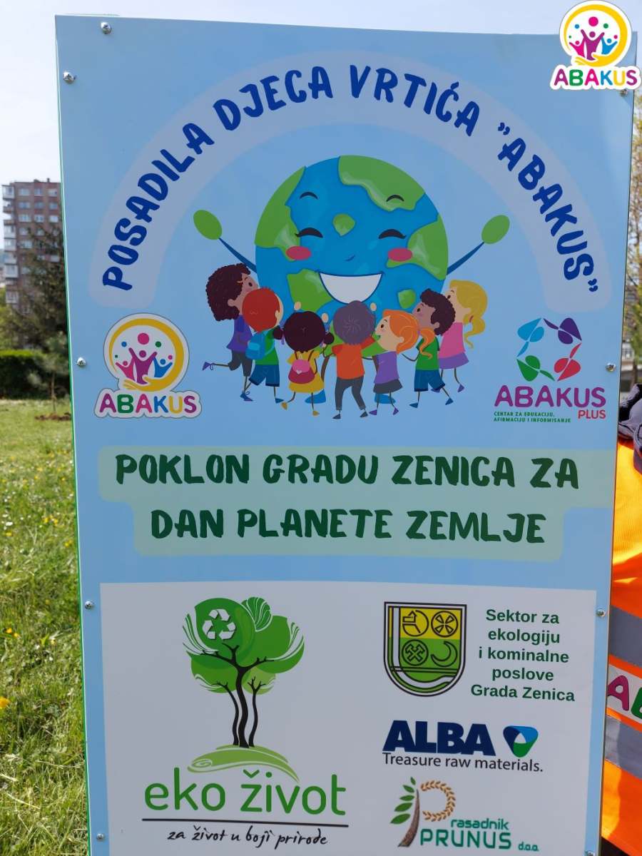 Sa malim zakašnjenjem zbog praznika i kiše, 80 djece vrtića “Abakus” su danas, dana 28.4.2023. godine, u saradnji sa Centrom za edukaciju, afirmaciju i informisanje “Abakus plus”, obilježili Dan planete Zemlje i posadili 10 odraslih sadnica bora na lokaciji “Turskog parka” na Kamberovića polju, a sve sa ciljem razvijanja ekološke svijesti kod djece predškolske dobi, ali i građana Zenice.