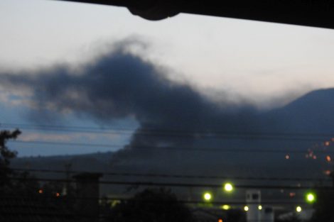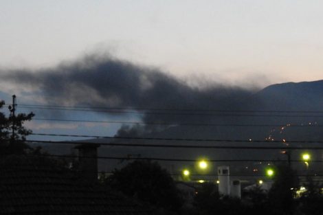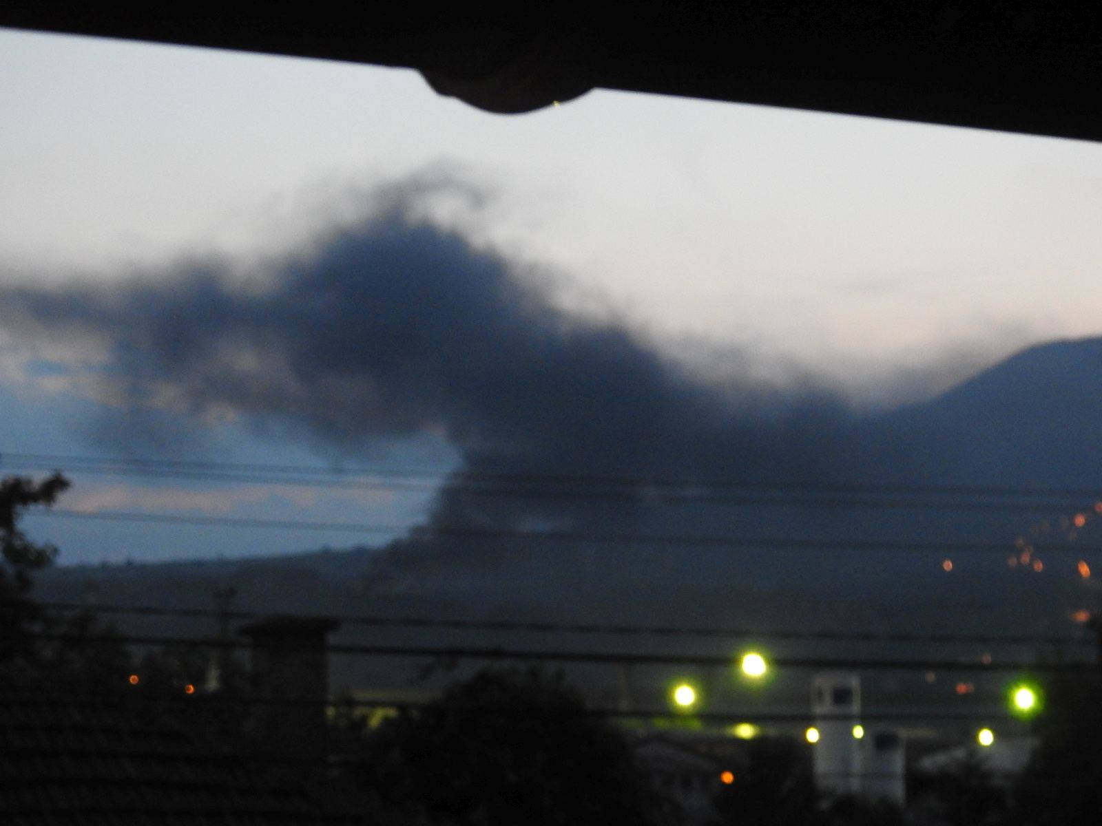 Primjetni su i manji plameni “jezici”, ali za sada nema službenih informacija šta gori, osim što je  sigurno da se stvaraju ogromne količine dima. Oko 21,30 je već bilo vidljivo da se dim prestao širiti u pravcu lisca, te se oblak sa izuzetno crnim dimom počeo širiti prema gradu.