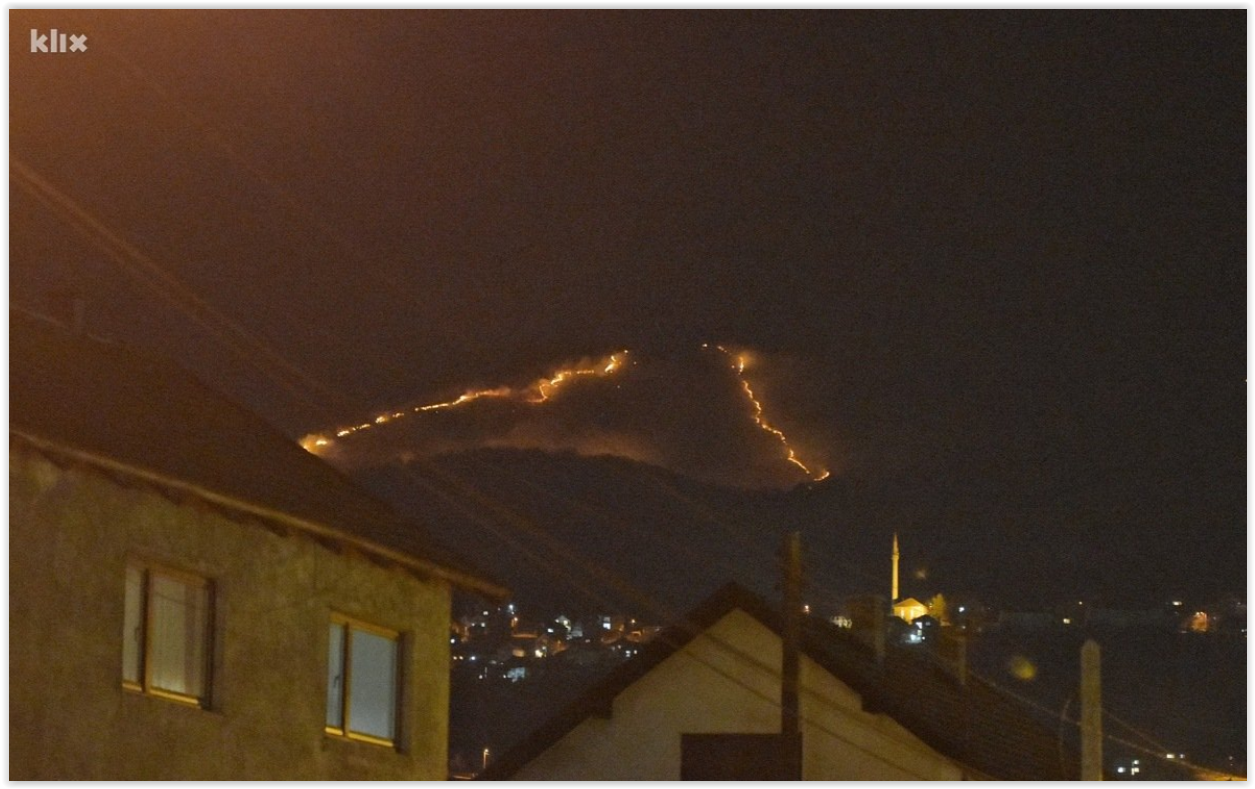 “Vatra koja je večeras izbila na Liscu prvenstveno je krenula prema releju, a promjenim smjera vjetra sada već ide ka naselju Gradišće. Naše ekipe su na određenim položajima, a zbog nepristupačnog terena nemoguće je gasiti ovaj požar”, kazali su nam iz PVJ Zenica.