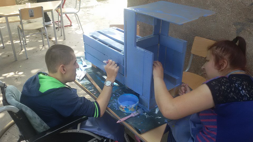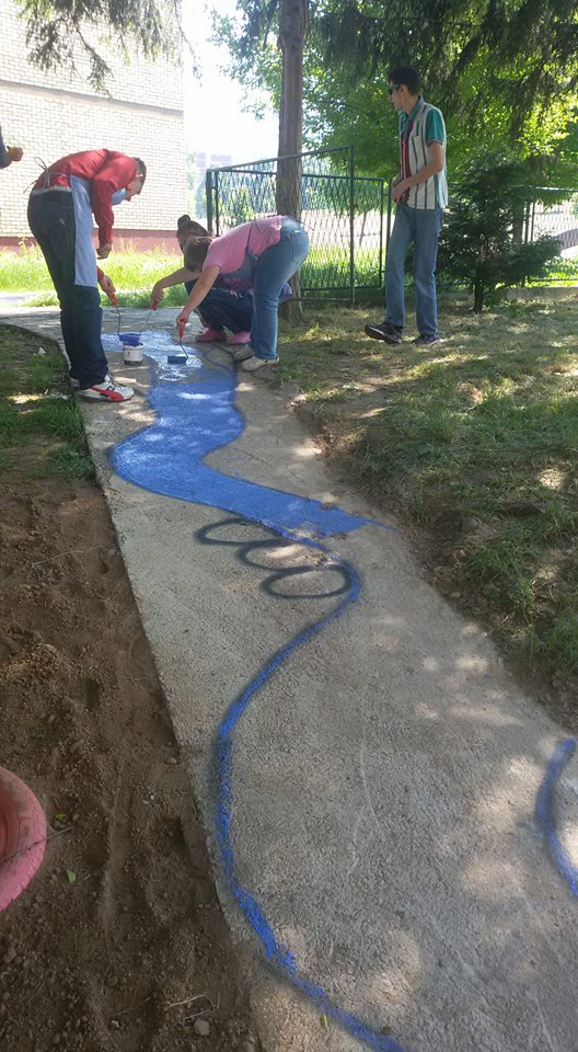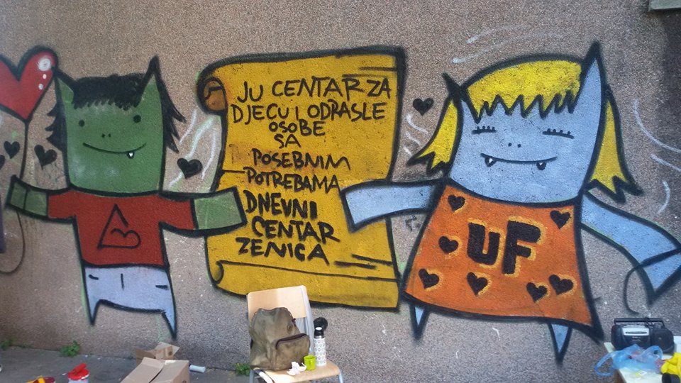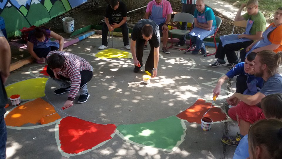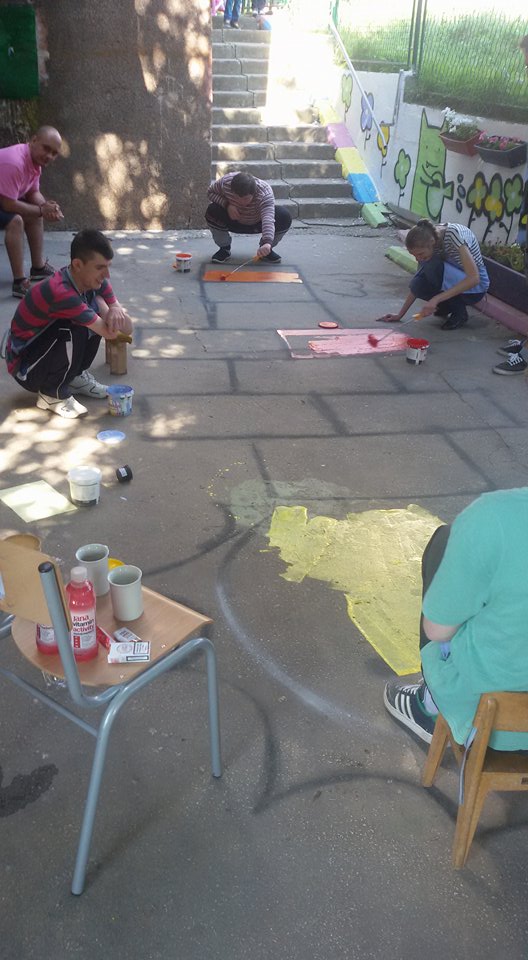 Naime, uposlenici i korisnici Dnevnog centra u saradnji sa Udruženjem mladih „Priroda i društvo“ grupe mladih i kreativnih ljudi su od tmurnih i sivih zidova napravili obojeni kutak ispred Dnevnog centra koji je, u znaku šarenih boja, izmamio osmijeh na lica kako korisnicima DC-a, tako i svim slučajnim prolaznicima. Uređenje dvorišta Dnevnog centra protekli su u znaku smijeha, ljubavi i sklapanju novih i lijepih prijateljstava a dvorište je dobilo sasvim novu dimenziju.