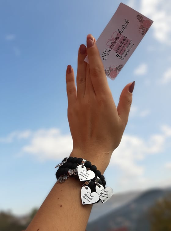 U sklopu ponude nakita i asesoara: – privjesci za cucle, privjesci za ključeve, narukvice, tespihi, nanogice,naušnice, prstenje,tijare ,ukrasni pojasevi, “šnale“ za cipele…