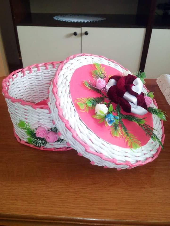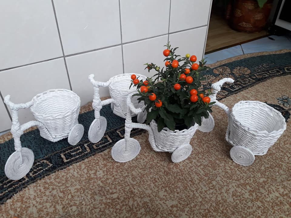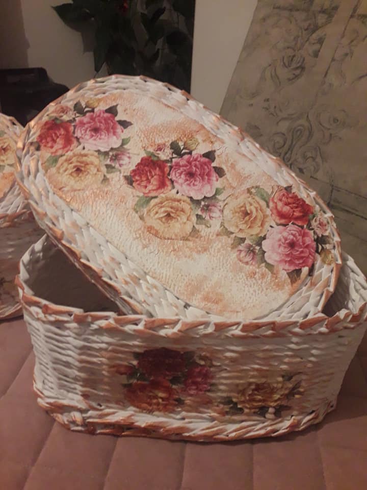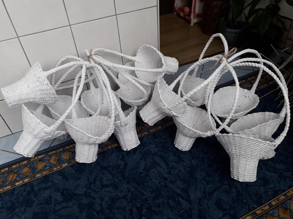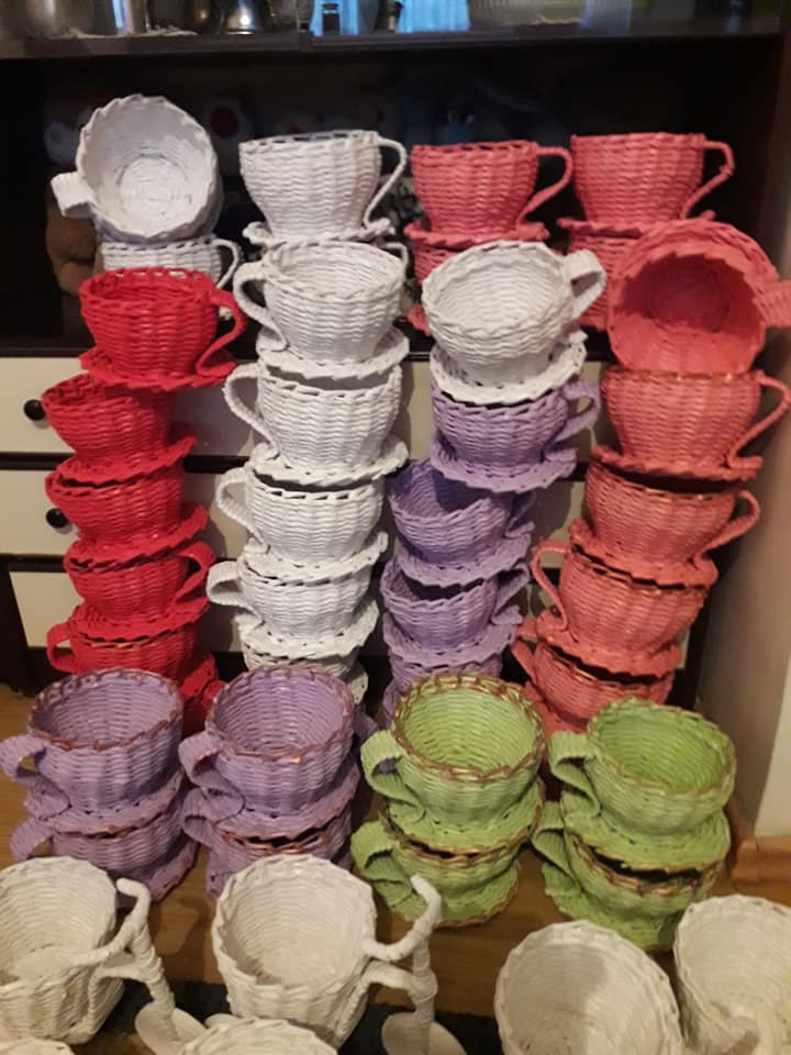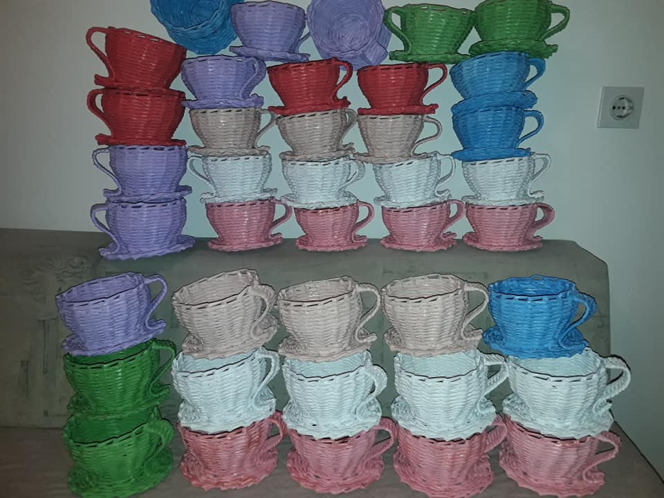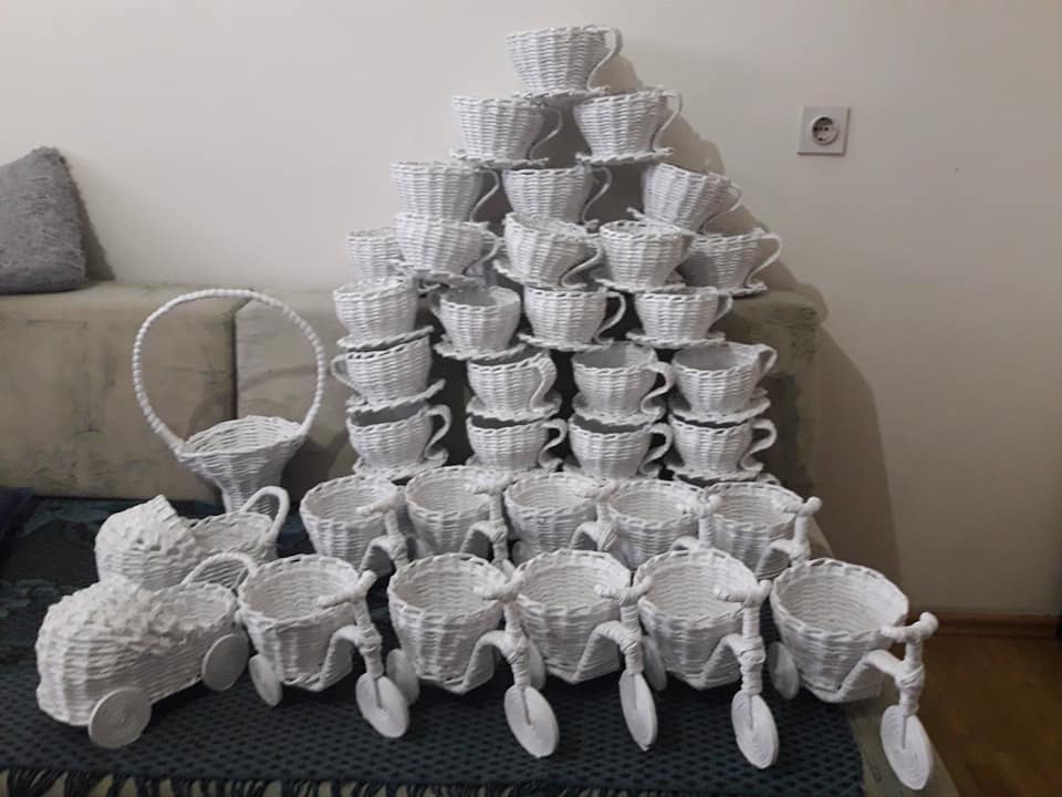 Korpe za cvijeće, vaze, ikebane, svadbene korpe, kutije za šminku, kućice za ptice, mace, ukrasni predmeti poput čizmica, bicikla, šolje za svijeće, korpe za veš, barbike i lebdeće šolje samo su dio njenog asortimana.