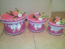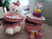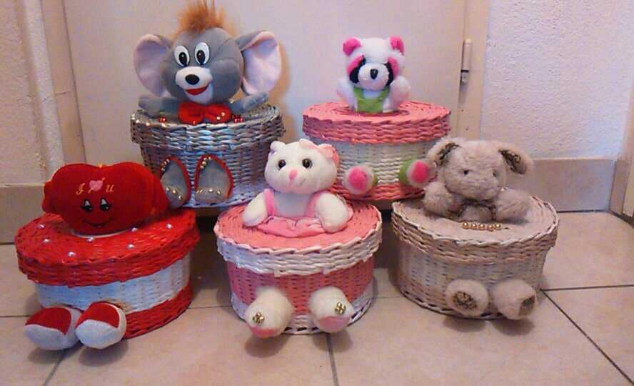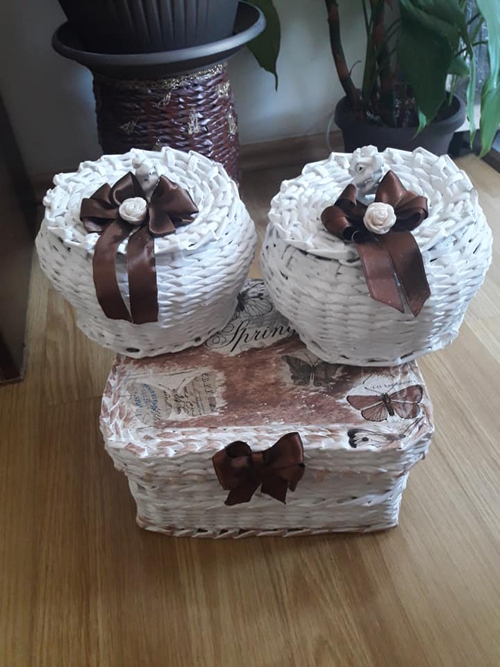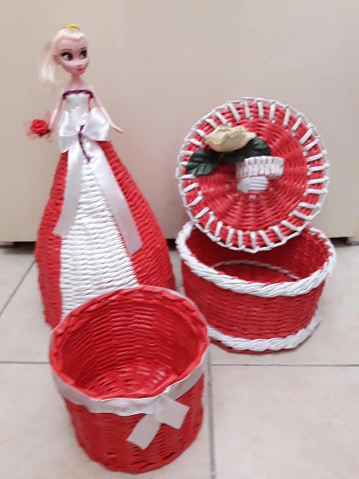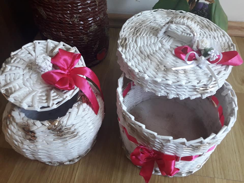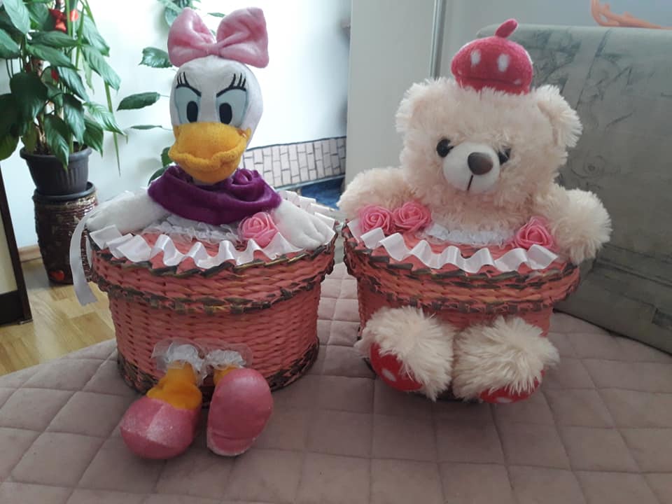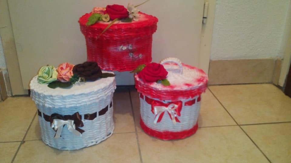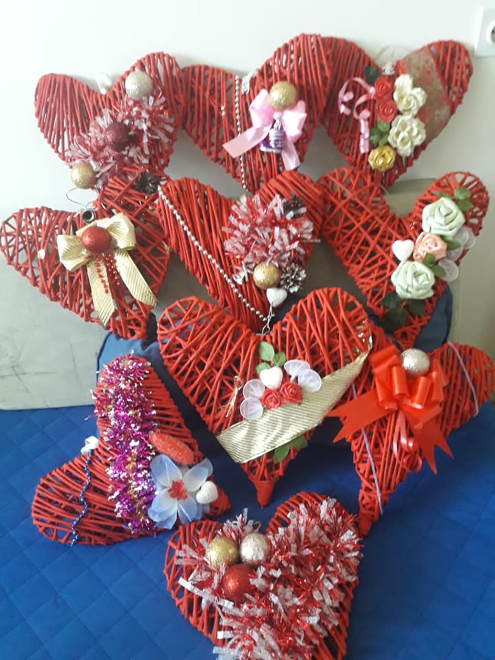 Korpe za cvijeće, vaze, ikebane, svadbene korpe, kutije za šminku, kućice za ptice, mace, ukrasni predmeti poput čizmica, bicikla, šolje za svijeće, korpe za veš, barbike i lebdeće šolje samo su dio njenog asortimana.