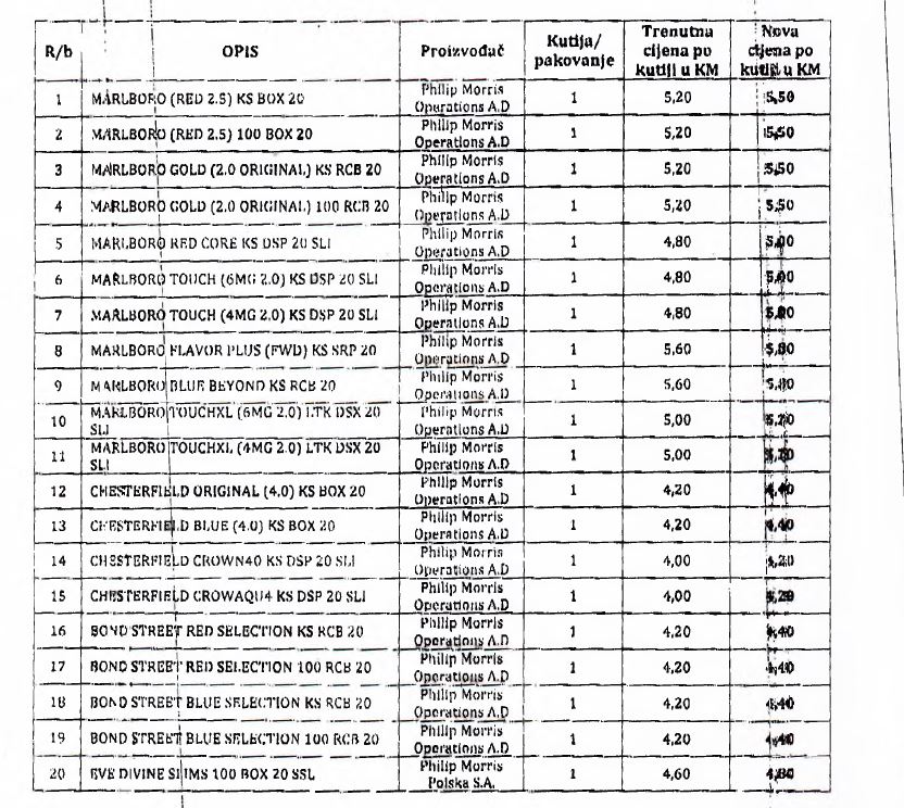 FOTO: Poznate nove cijene cigareta od 1. januara – Uprava za indirektno oporezivanje Bosne i Hercegovine objavila je nove cijene cigareta koje će se primjenjivati od 1. januara 2018. godine.