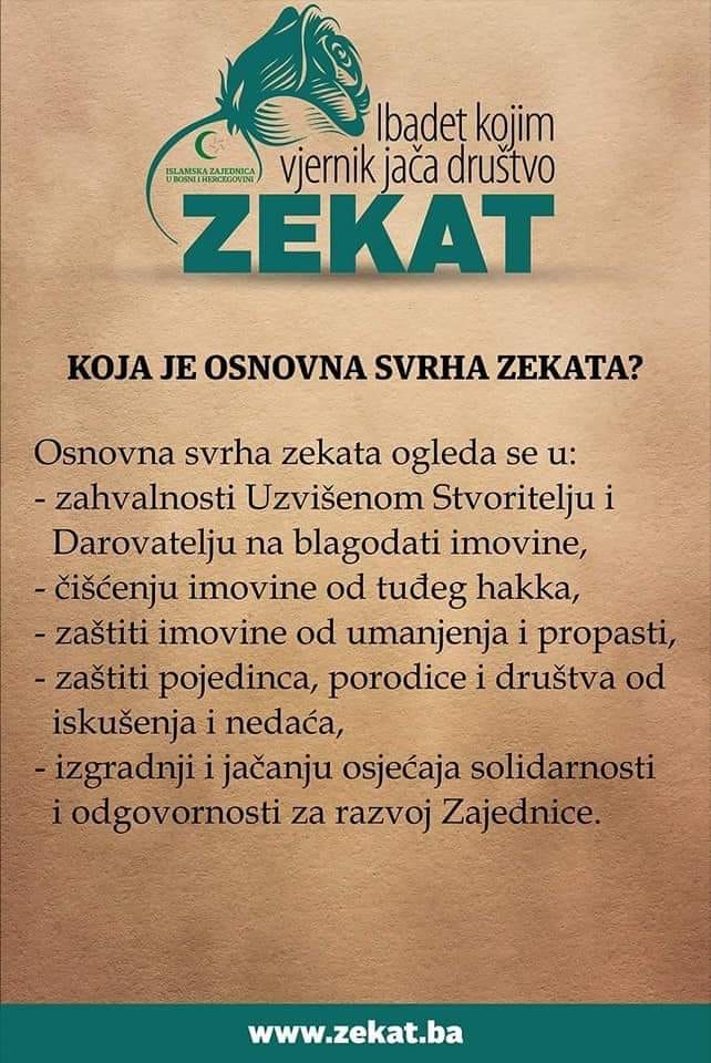 Dakle, zekat i sadekatu-l-fitr se može uplatiti u svim džamijama i medžlisima Islamske zajednice u BiH i dijaspori putem blokova ili putem transakcijskih računa medžlisa i transakcijskog računa Rijaseta Islamske zejednice u BiH.