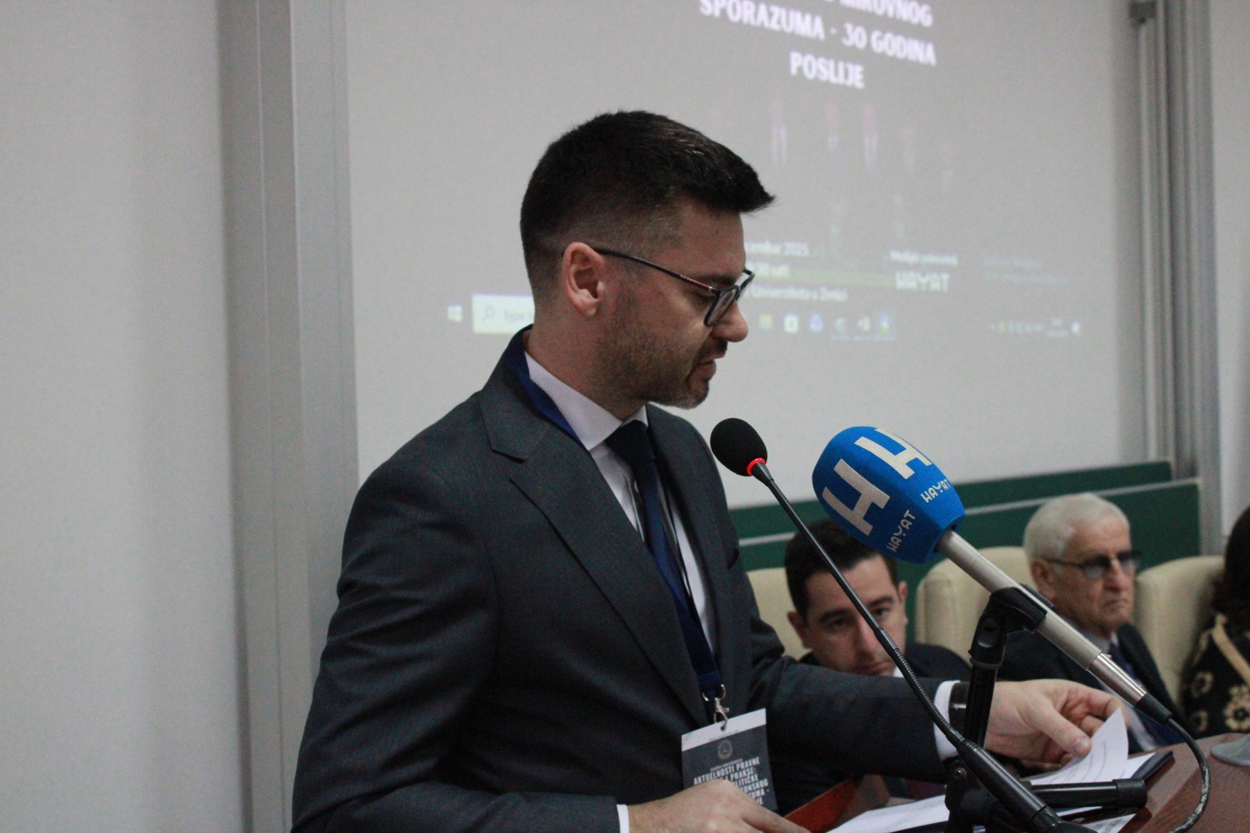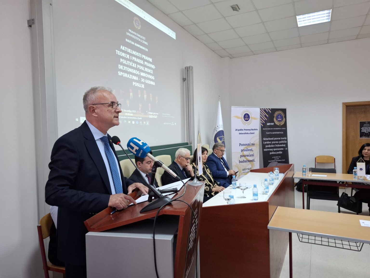 Danas se u zgradi Pravnog fakulteta Univerziteta u Zenici održava konferencija „Aktuelnosti pravne teorije i prakse: pravno-političke posljedice Dejtonskog mirovnog sporazuma – 30 godina poslije“, koju je uvodnim obraćanjem otvorio rektor prof. dr. sc. Jusuf Duraković, nakon čega se prisutnima obratio i dekan Pravnog fakulteta.