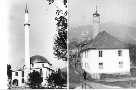 Druga je uporedna fotografija stare i nove džamije u Donjoj Gračanici, specijalno za svečanost otvorenja 5. oktobra 1980. godine.