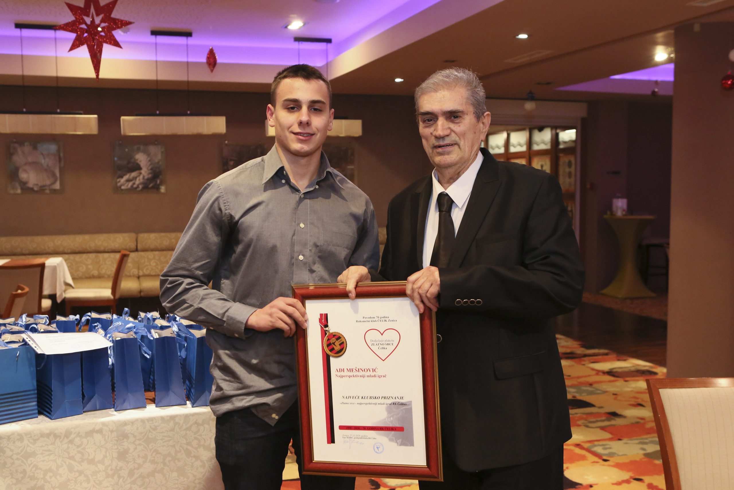 FOTO: Prednovogodišnji prijem za igrače i upravu RK Čelika i nagrade najboljim – Predsjednik Rukometnog kluba Čelik Pane Škrbić priredio je tradicionalni prednovogodišnji prijem za igrače i Upravu kluba, a petorici najboljih igrača u ovoj godini je uručio godišnja priznanja ”Srce Čelika”, te im uručio i prigodne poklone.