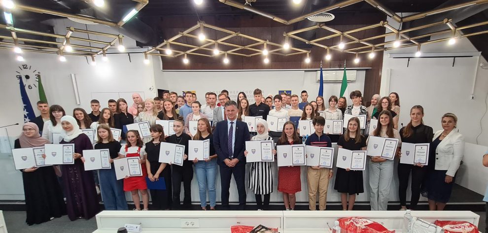 Premijer Zeničko-dobojskog kantona Mirnes Bašić i ministar za obrazovanje, nauku, kulturu i sport Spahija Kozlić upriličili su danas u sjedištu Vlade prijem za 97 učenika generacije osnovnih i srednjih škola u ovom kantonu.