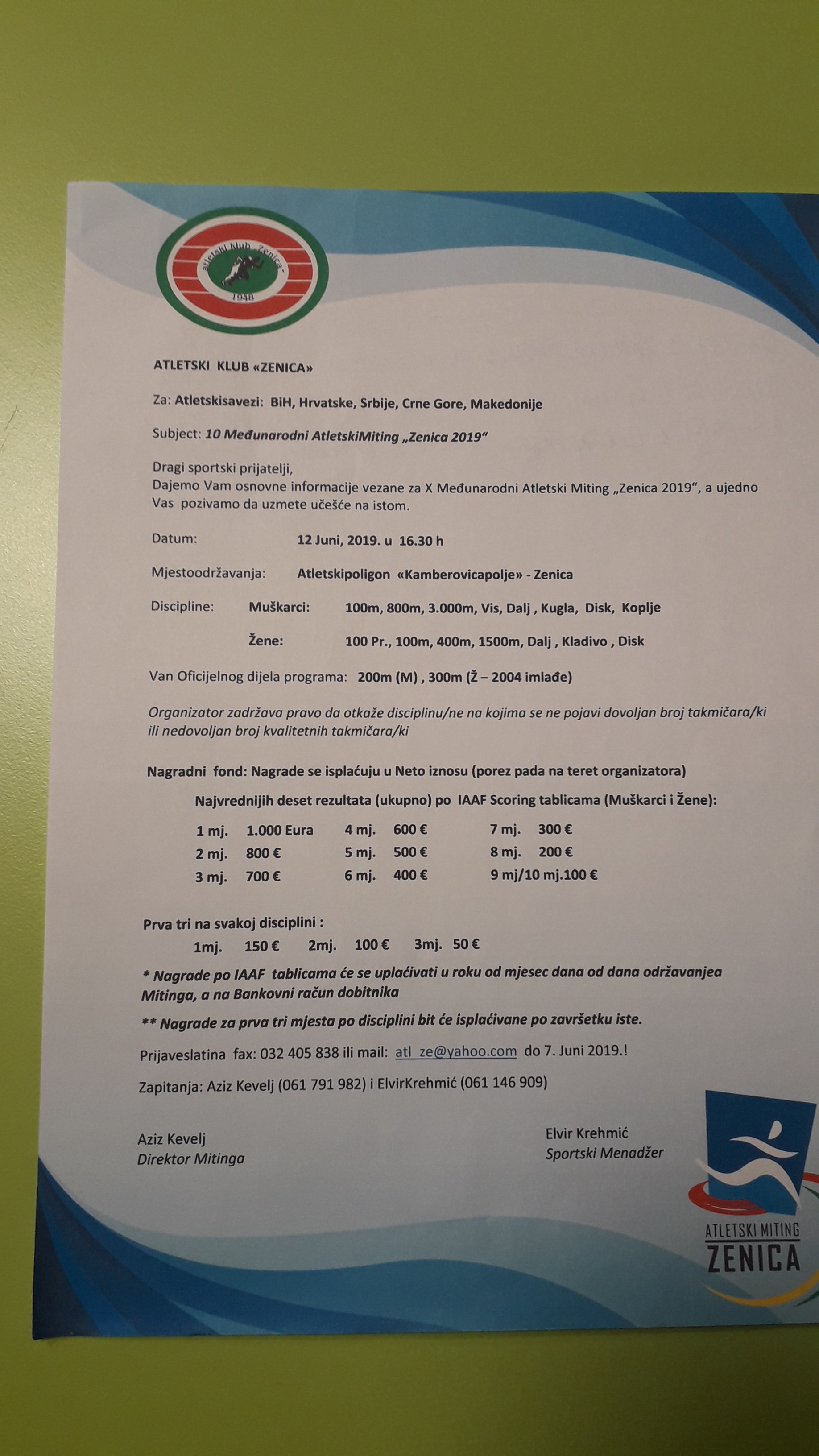 –Sa organizacijom desetog po redu postajemo dio tradicije. Mi smo sada sportski brend u BIH. I kako to biva pobjednicima se pridruže i oni nepovjerljivi. Atletski miting organizovati u Zenici i našoj državi je veoma teško. Sport je kao nekomercijalan, i nema poseban status i mjesto u zemlji. Gosti sa strane koji nam dođu u Zenicu iznenađeni su kvalitetom i organizacijom mitinga -, kazao je Kaknjo.