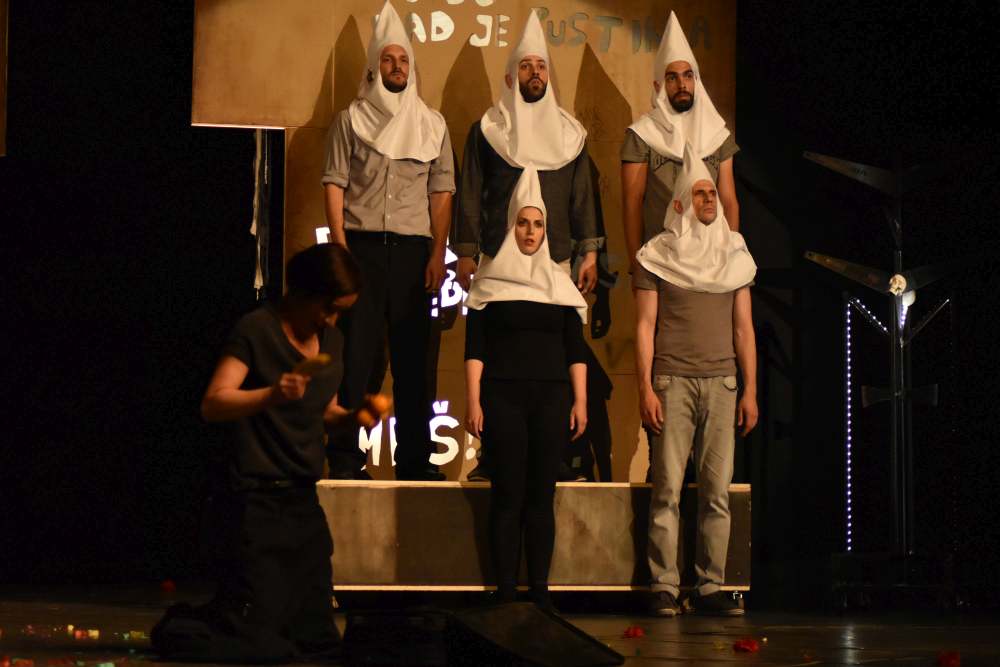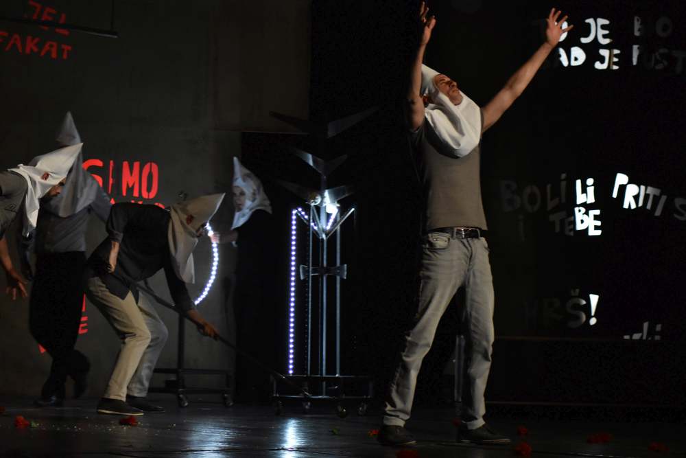 FOTO: Pretposljednje takmičarske večeri 17. festivala bh. drame izvedena SARTR-ova predstava „Jedvanosimsoboakalomistobo”