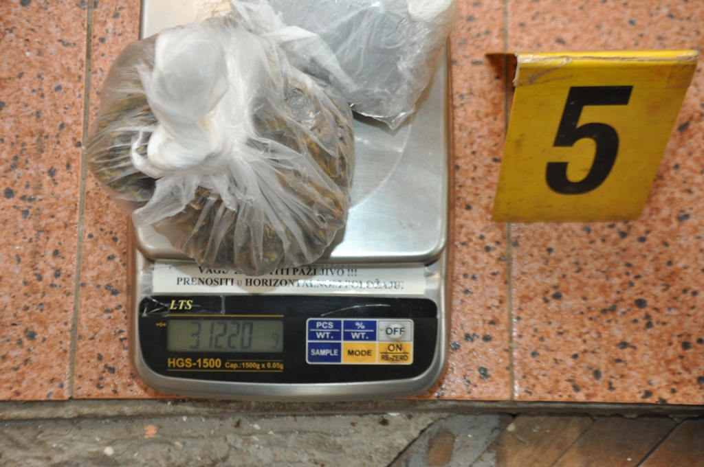 - Izvršenim pretresom kuće i pomoćnih objekata koji se nalaze u ulici Sarajevska, a koje koristi lice B.D., rođeno 1992. godine, iz Zenice, pronađeni su automatska puška kalibra 7,62 mm sa jednim okvirom i dva metka, pištolj marke “Beretta” kalibra 6,35 mm, jedna digitalna vaga, jedna tzv. drobilica za biljnu materiju, kao i određena količina praškaste i biljne materije koja svojim izgledom asocira na opojnu drogu. Lice B.D. je lišeno slobode.