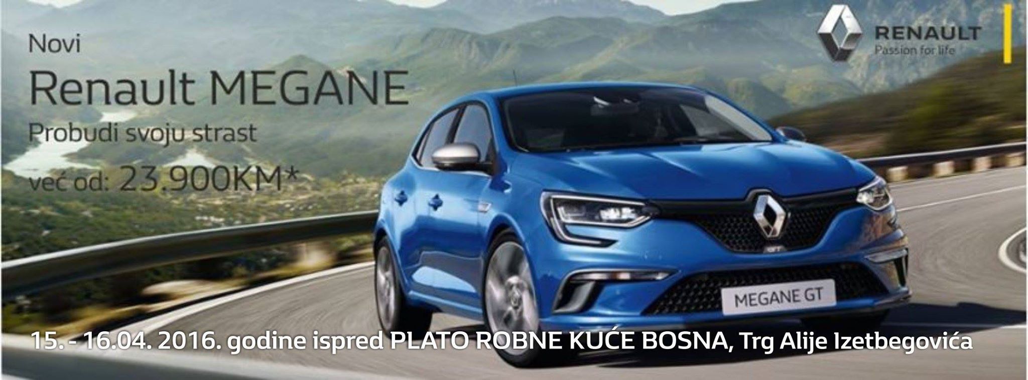 U dane 15. i 16.04. 2016. godine pravi prezentaciju novog modela MEGANE na platou ispred robne kuće „Bosna“, Trg Alije Izetbegovića.