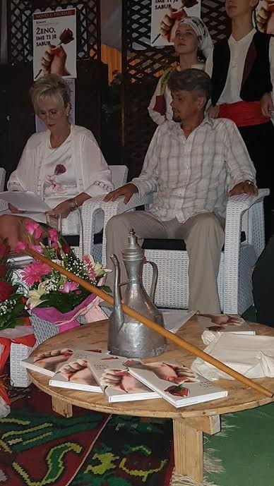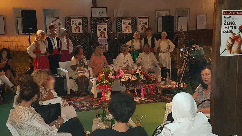 FOTO: Promocija romana “Ženo, ime ti je sabur”- Zadnje julsko veče, u ljetnjoj bašti „Cabaret cluba“ u Zenici, upriličena je neobična promocija romana prvijenca, „Ženo, ime ti je sabur“ autorice Zuhre Bajramović-Halać. Počelo je zvucima dobošara, koji se u bosanskoj narodnoj nošnji prošetao kroz brojnu publiku do scene, za ovu priliku ukrašene bosanskim motivima, uz mlade članove GUD „Filigran“ poredane oko sofre i mušebaka. Čitanjem stihova pjesme „Sabur će umjesto sunca, svjetlom se duše zvati“, za koje inspiraciju nađoh uromanu, uz instrumentalu na harmonici mladog muzičara Dženisa, započeo sam promociju.