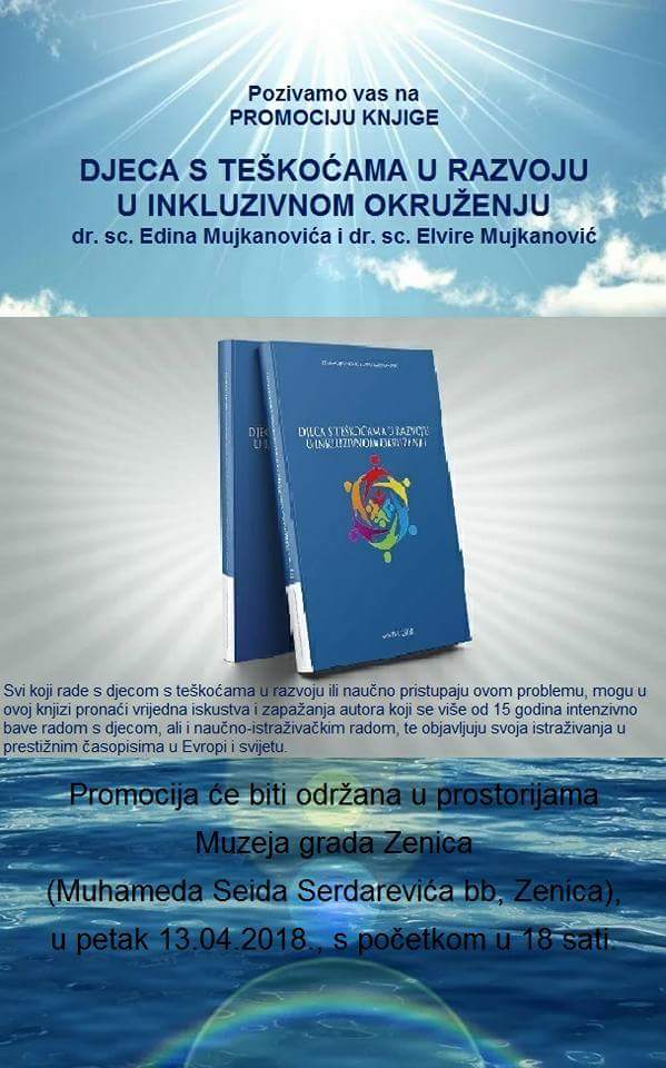 FOTO: Promoviran udžbenik “Djeca s teškoćama u razvoju u inkluzivnom okruženju”Ze-do kantona i Udruženja defektologa/edukatora rehabilitatora „ Ključ“ Ze-do kantona, u petak je u Muzeju grada Zenice održana promocija udžbenika „Djeca s teškoćama u razvoju u inkluzivnom okruženju“ autora Dr.sc. Elvire Mujkanović i Dr.sc. Edina Mujkanovića.